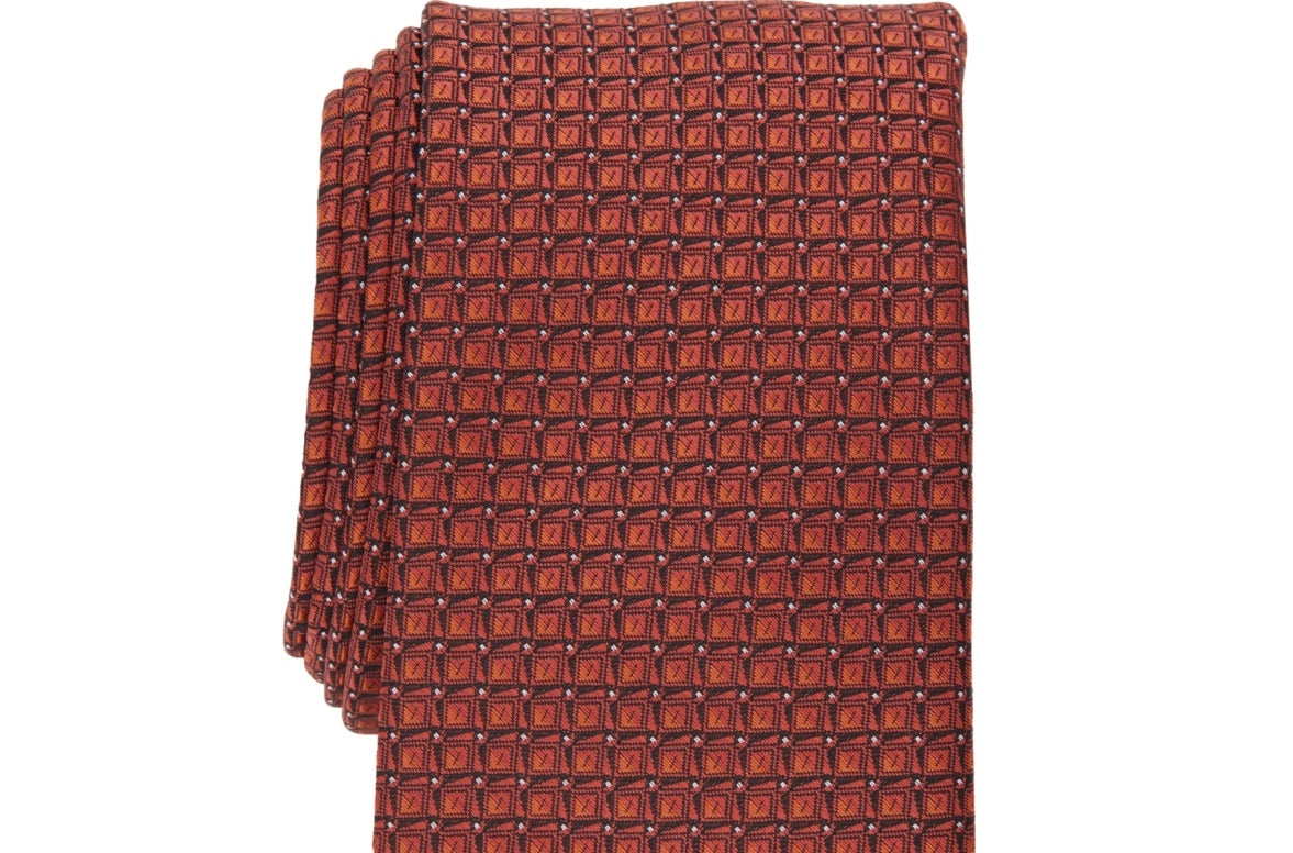 An interweaving pattern of squares and pin dots adds depth and sophistication to your formal look when you suit up in this slim necktie from Alfani|