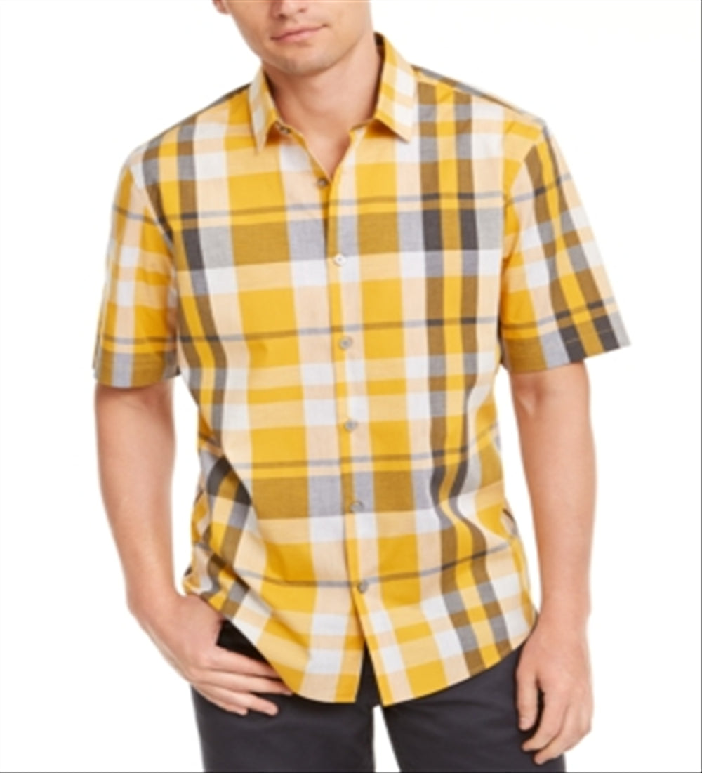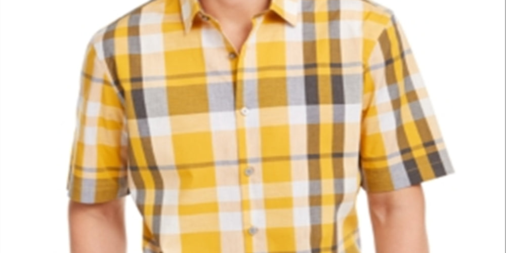 A classic button-down look gets a contemporary update with the unique grid-like plaid of this stylish cotton shirt from Alfani
