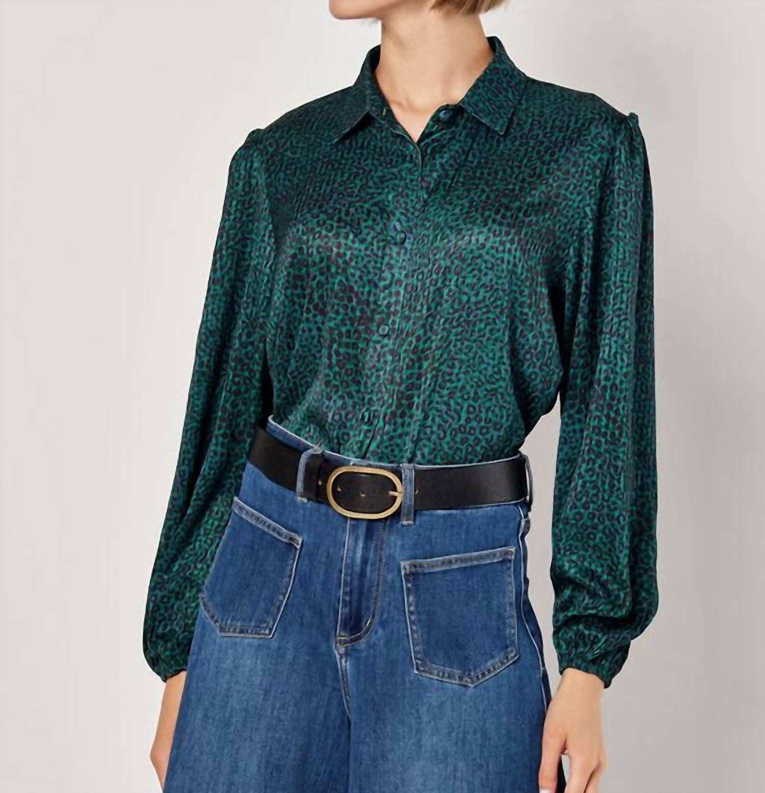 Pair this with your favorite jeans and slides for your next girls night out. Elevate your wardrobe with the Micro Animal Long Sleeve Blouse by APRICOT, a sophisticated blend of style and comfort. This green blouse features long sleeves and a chic collared neckline, perfect for both professional and casual settings. Crafted from high-quality polyester, it boasts a timeless animal pattern for a bold statement. Closure: Button closure.
