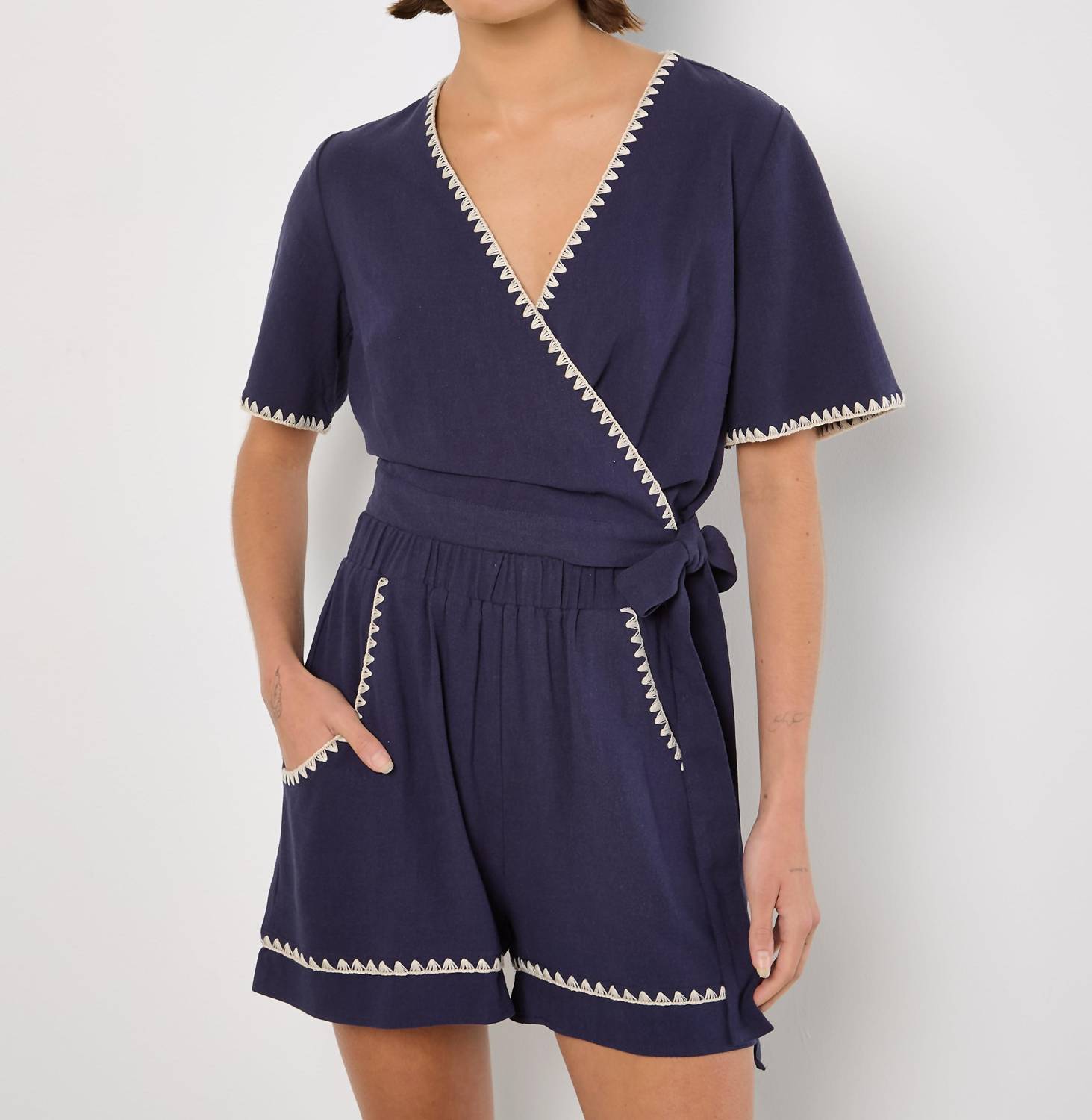 A timeless blouse that will never go out of style. Introducing the Riti Short Sleeve Top by Apricot, a casual wrap-style blouse in a rich navy hue that exudes laid-back sophistication. Crafted with an elegant V-neckline and standout stitch detail, this piece delivers a bold character with a minimalist flair. Made from 82% viscose and 18% linen, its relaxed fit is perfect for vacation or summer outings. Proudly made under fair working conditions in Vietnam.