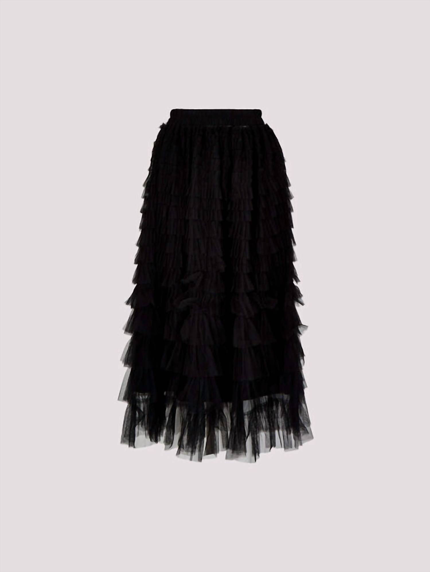 Show off just the right amount of skin in this beautifuly designed midi length skirt. Introducing the Tulle Layered Midi Skirt by APRICOT, a chic and whimsical piece crafted for those special occasions. This skirt features a textured pattern in a layered, flared design, crafted from 100% polyester for both the shell and lining. The skirt has an approximate length of 84cm, showcasing an asymmetrical hem and an elastic waistband for a comfortable pullover closure. Designed with a regular fit, this versatile black midi skirt requires machine wash care, making it a statement addition to any wardrobe.