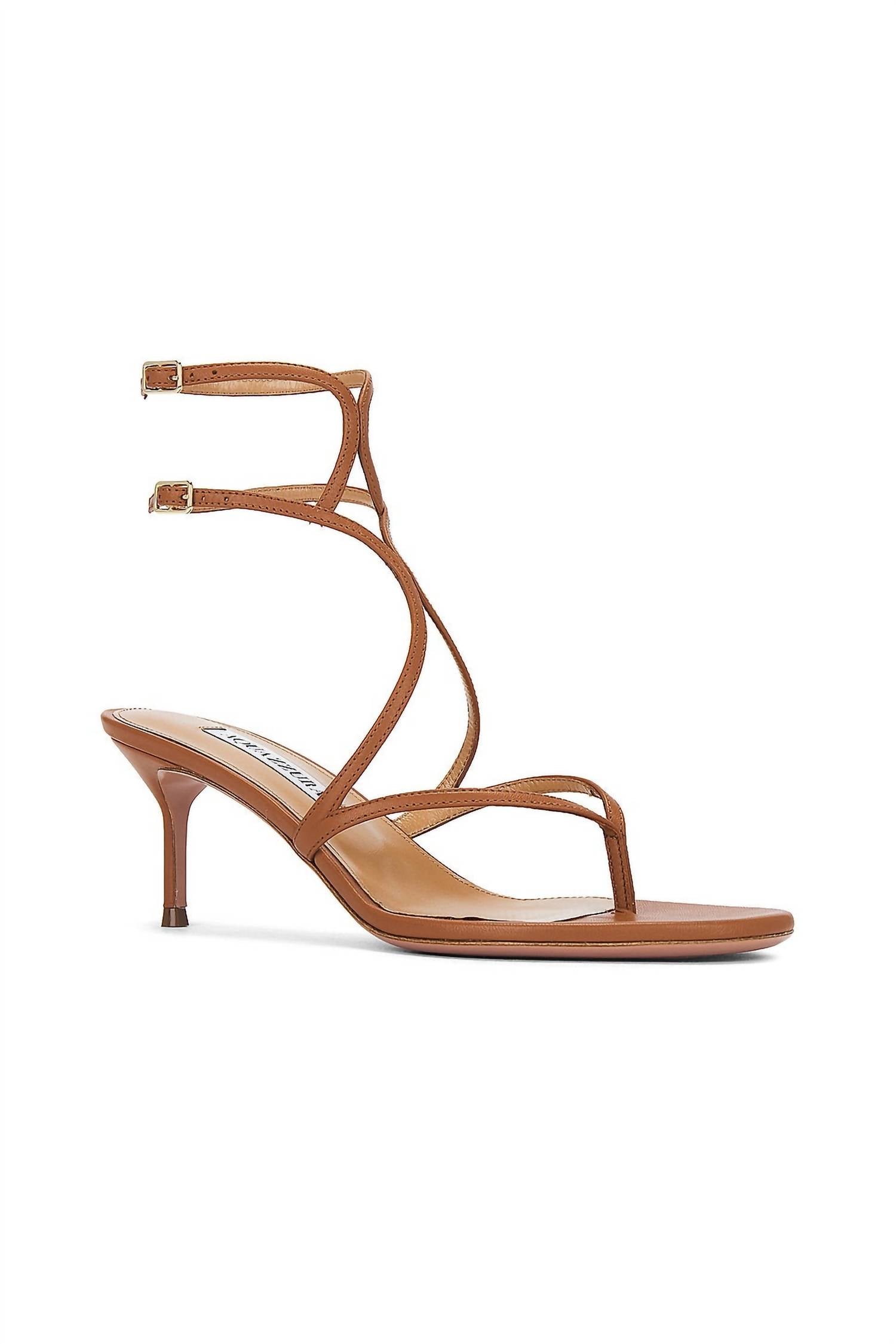 Classicly cute and all-day-wearable. We love this sandal. Experience timeless elegance with the Baia Sandal by AQUAZZURA, perfect for any cocktail event. These sandals boast a stylish almond open toe and a chic kitten heel measuring 65mm (2.6 inches) in height. With a nappa upper, leather sole, and leather footbed and lining, they promise both comfort and sophistication. The dual ankle buckle closure and signature logo detailing complete the ensemble, making them a standout choice for your workwear collection.
