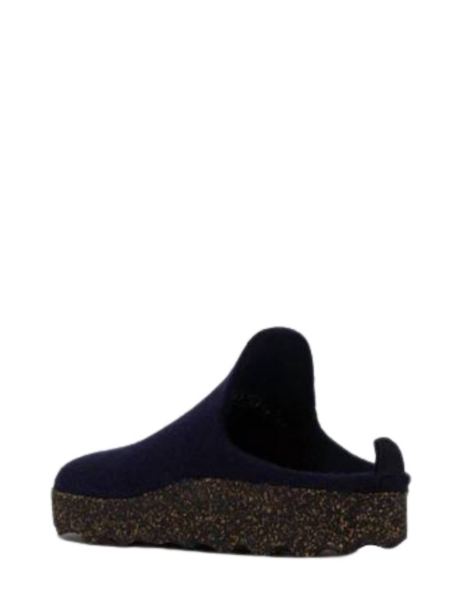Slip them on and go! Come mule slipper. Pull tab at the heel. Sheep wool upper. Textile lining. Textile insole. Cork outsole.
