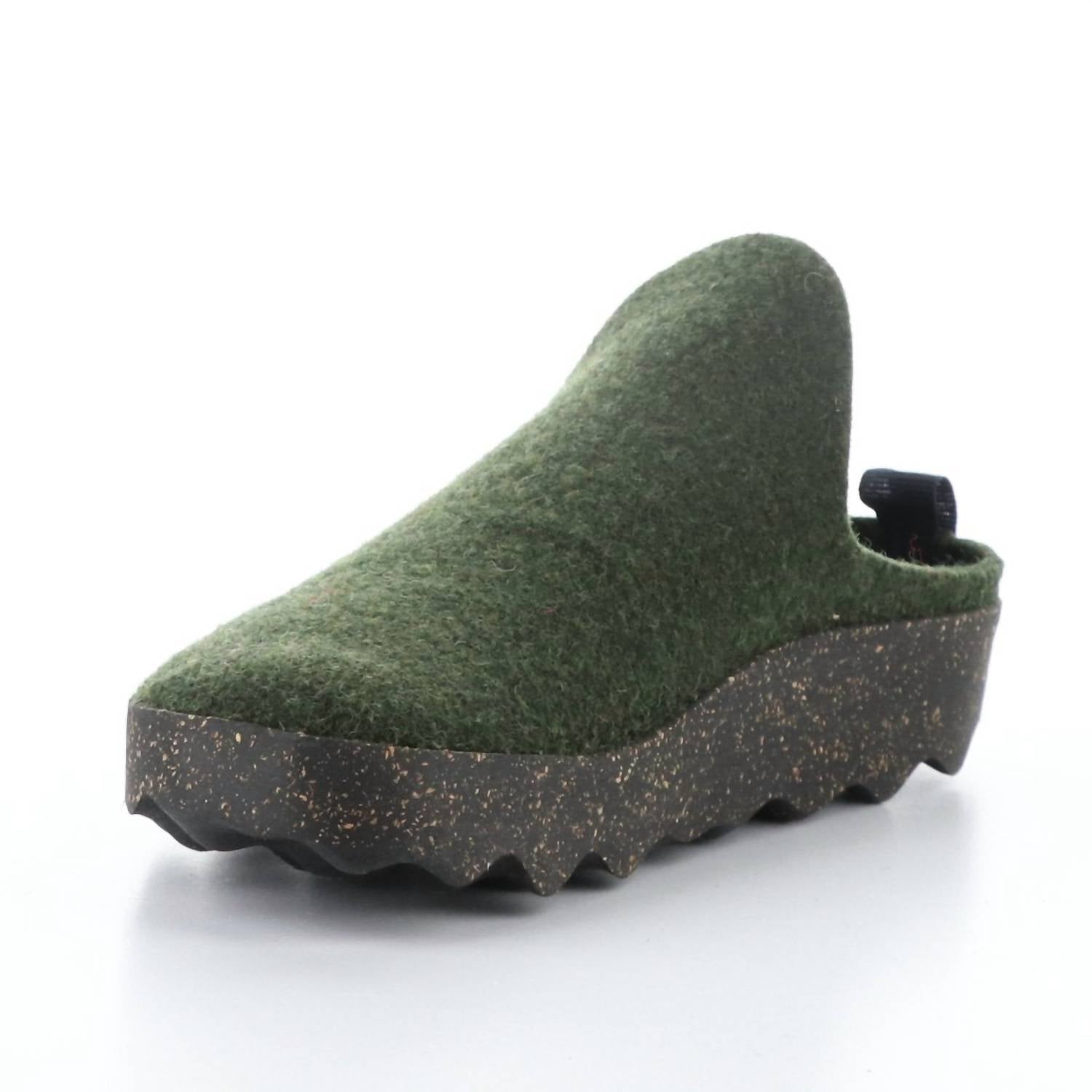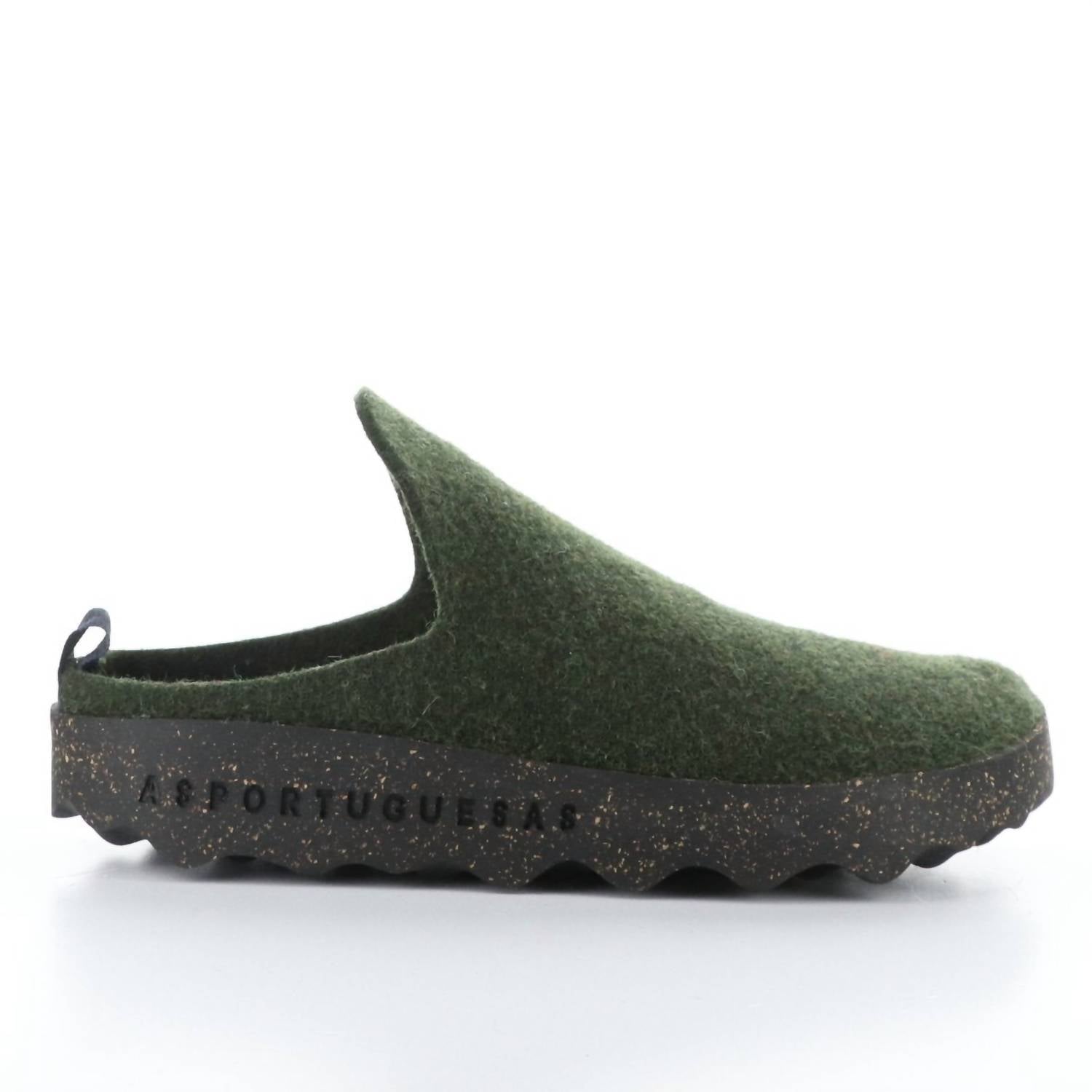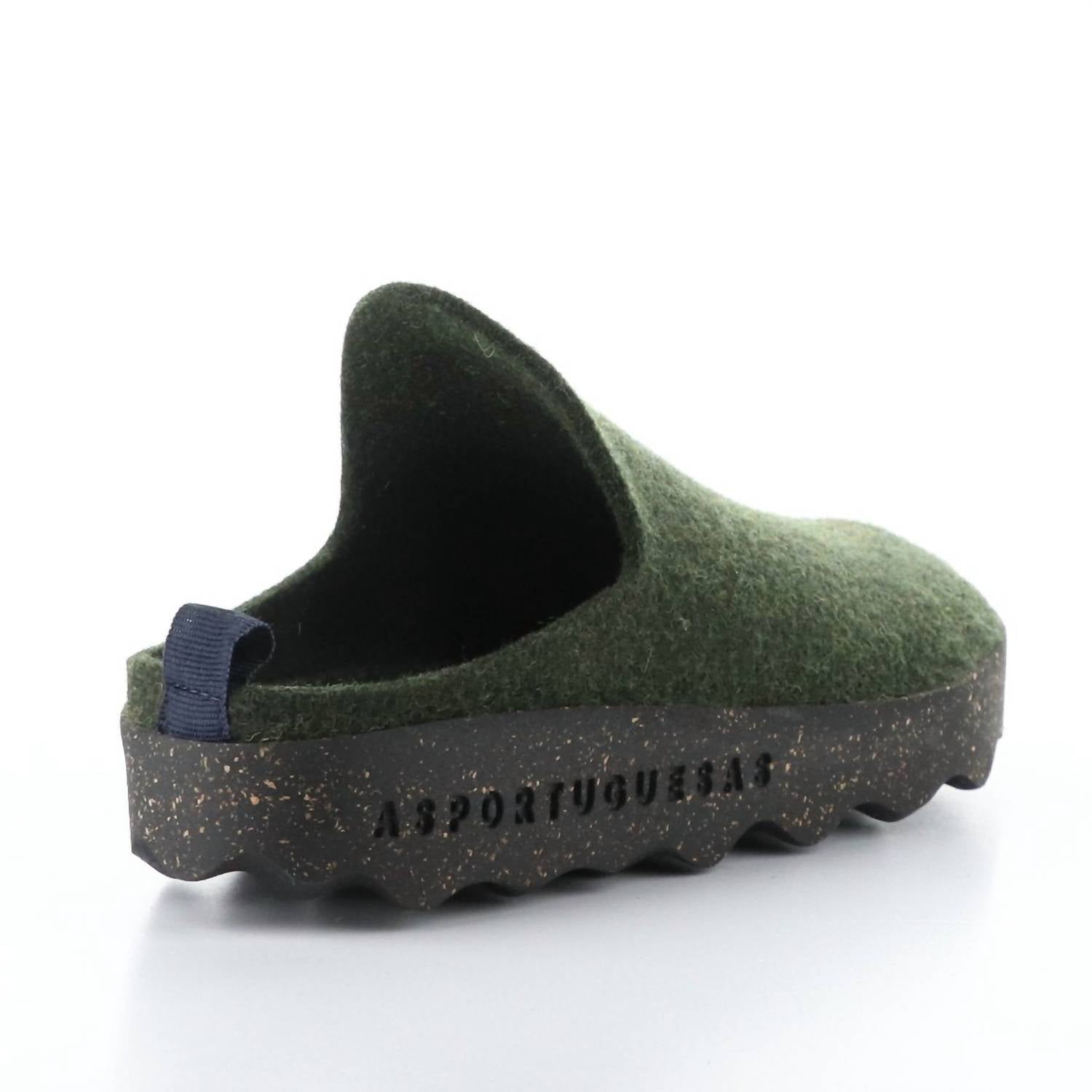 Stylish, comfy, and versatile. We can't find anything wrong with these. Experience the perfect blend of contemporary-chic style and everyday comfort with the Women's Come Mule by ASPORTUGUESAS in Military Green. Crafted with a soft wool upper, this mule provides warmth in winter and coolness in warmer months. Featuring a shock-absorbing 1.5" cork sole, it’s both eco and ego-friendly, made in Portugal. Its slip-on design fits true to size and offers a medium width and round toe shape for all-day ease.
