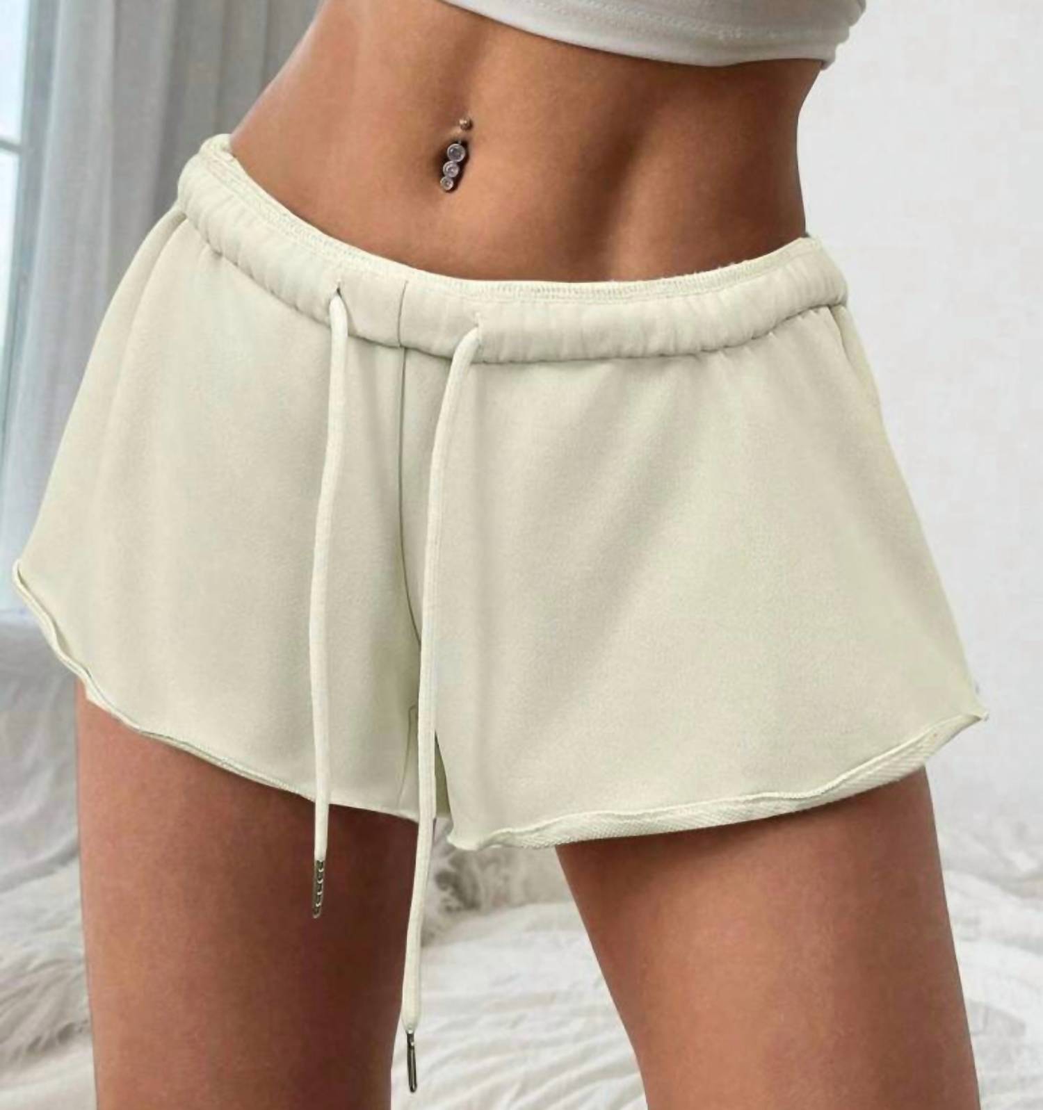 Stylish and comfortable, these athletic shorts will never go out of style. The Women's Mini Shorts by Bayshore are your go-to for a sporty summer look, perfect for fitness and workout activities. These shorts are solid gray with a convenient tie closure for a secure fit. Made without pockets, they offer a streamlined, lightweight design ideal for athleisure wear. Care instructions recommend spot or wipe cleaning.