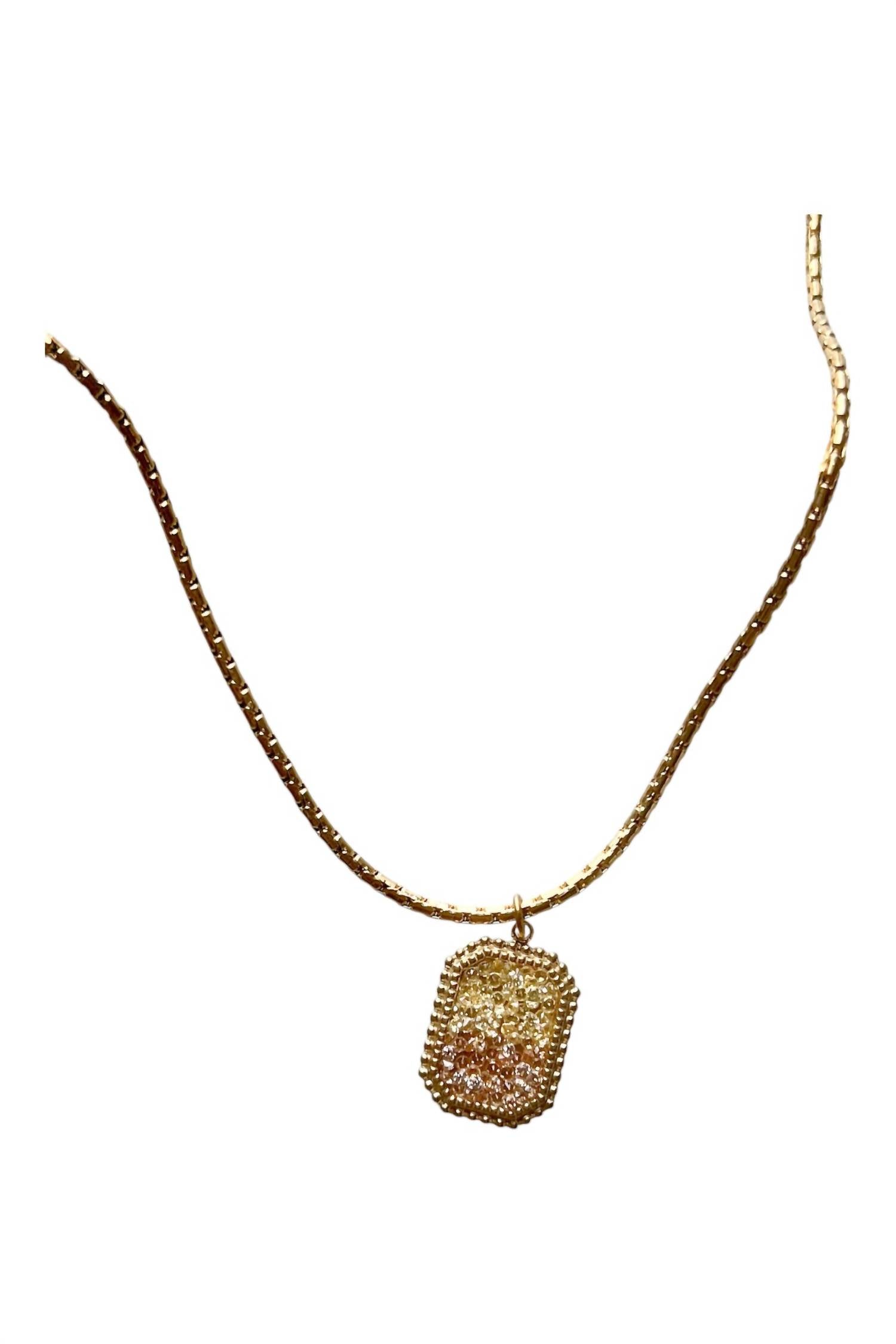 The perfect stand-out necklace that complements even the most basic t-shirt.Waterproof. Tarnish resistant. Hypoallergenic. Length: 16" + 2" extender chain . 18K Gold plated stainless steel.