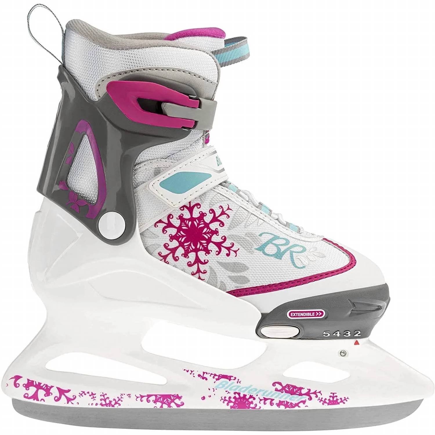 This athletic shoe comes in a charming white and pink color scheme, perfect for little kids. With a round toe shape, it's crafted to ensure comfort and style on the ice. Ideal for budding skaters, it offers both functionality and youthful flair.