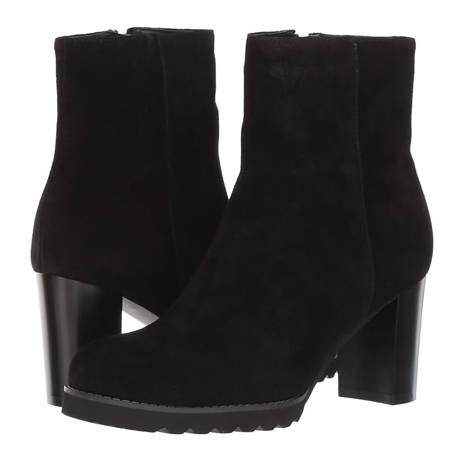 Say hello to the perfect, most versatile boot. The ankle height makes this style easily transition from day to night. Wear them with your favorite skinny jeans and tee for a more laid back look, or pair them with your favorite mini dress and jacket for a night out on the town.Side zip closure. Leather outer/synthetic lining and sole. True to size. Measurements - 3" heel. 4 1/2" shaft.