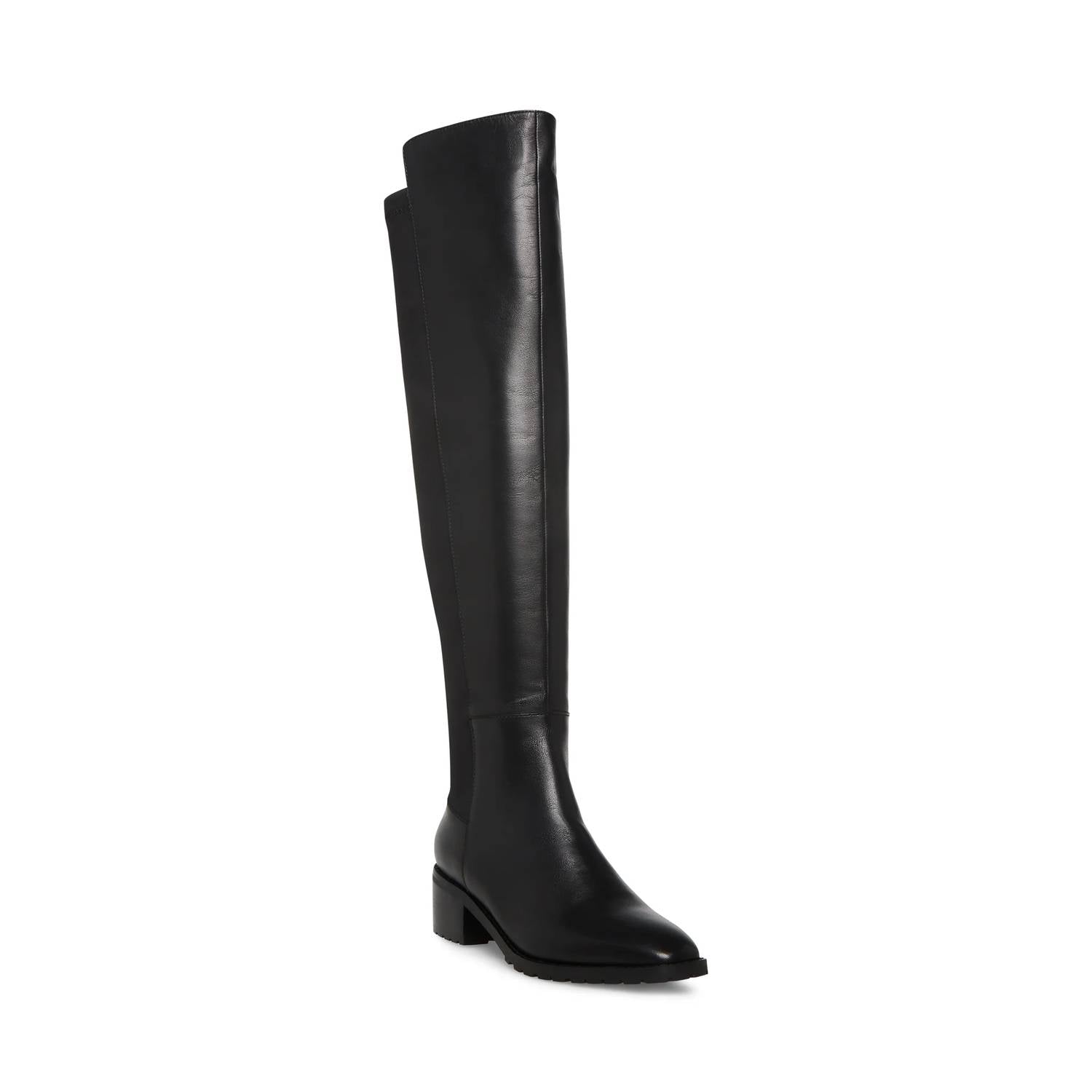 A trend that is here to stay. Crafted from durable suede. Over-the-knee boots are designed to handle the elements with waterproof materials and sealed seams. Featuring a convenient pull-on style, almond toe shape, and a comfortable mid block heel measuring 2.75 inches. Offer both style and practicality. Shaft height is 5.75 inches with a 9-inch circumference, ensuring a snug fit. Care is simple, just wipe off dirt and calcium traces with a damp cloth.