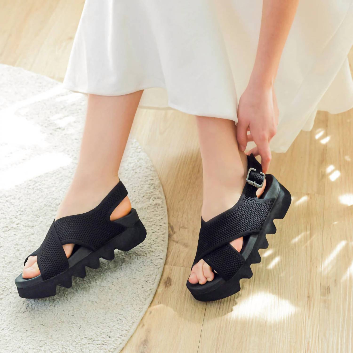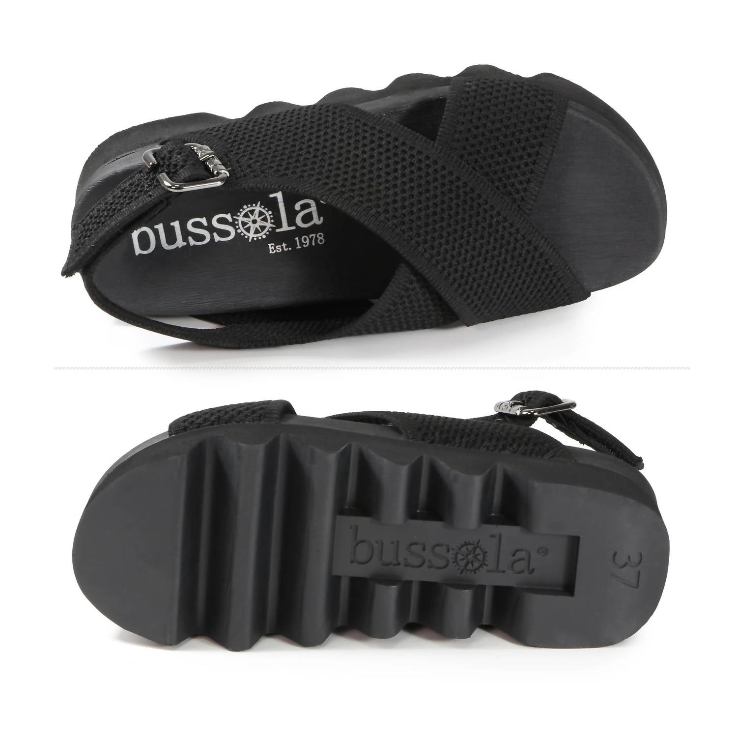 Flowy dresses, cropped pants, and even jumpsuits... this sandal works with them all! Step into sophistication with the Women's Cantara Capri Criss Cross Zig Zag Base Sandal by Bussola, where minimalist design meets summer style in a timeless Nero shade. These sandals feature a chic cross-strap design crafted from a breathable and flexible knitting vamp, complemented by a lining of textile and PU suede for unmatched comfort. The high-elastic EVA insole ensures a cushioned, responsive fit, while the ER (EVA + Rubber) outsole provides lightweight durability and superior traction. With a heel height of 1.34 inches and an open toe shape, these sandals are made in Vietnam and ideal for travel, effortlessly transitioning from day to night.