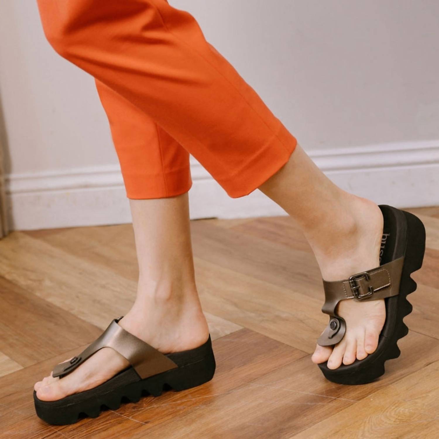 This sandal will take you from brunch to dinner and everything in between. Step into summer sophistication with the Bussola Women's Cassia Capri Flip-flops in a chic pewter hue. These stylish sandals boast a chunky platform design with a low 1.34" heel, perfect for beach days or evening strolls. Crafted with a water-resistant synthetic upper and lining, they ensure comfort with a padded EVA insole and a light Max EVA outsole. Ideal for warm weather, these open-toe platform heels are a versatile addition to your seasonal wardrobe.