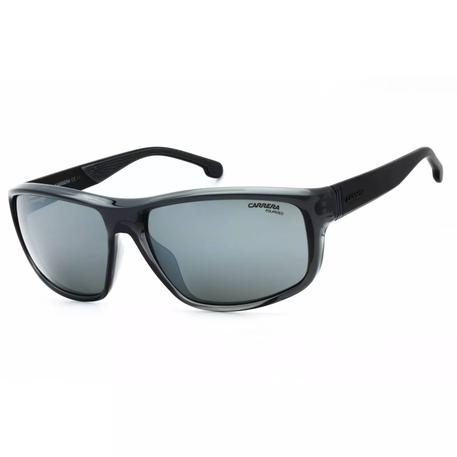 Discover the Carrera 8038/S Men's Sunglasses, a sleek accessory designed for modern elegance. Crafted with a grey plastic frame, these sunglasses feature a full rim rectangular shape and showcase the iconic Carrera logo at the temple. The polycarbonate grey silver SP polarized/mirrored lenses ensure clarity and protection, with dimensions of 63 mm lens width, 15 mm bridge size, and 130 mm temple size for an impeccable fit. Each pair arrives brand new in an original gift box.