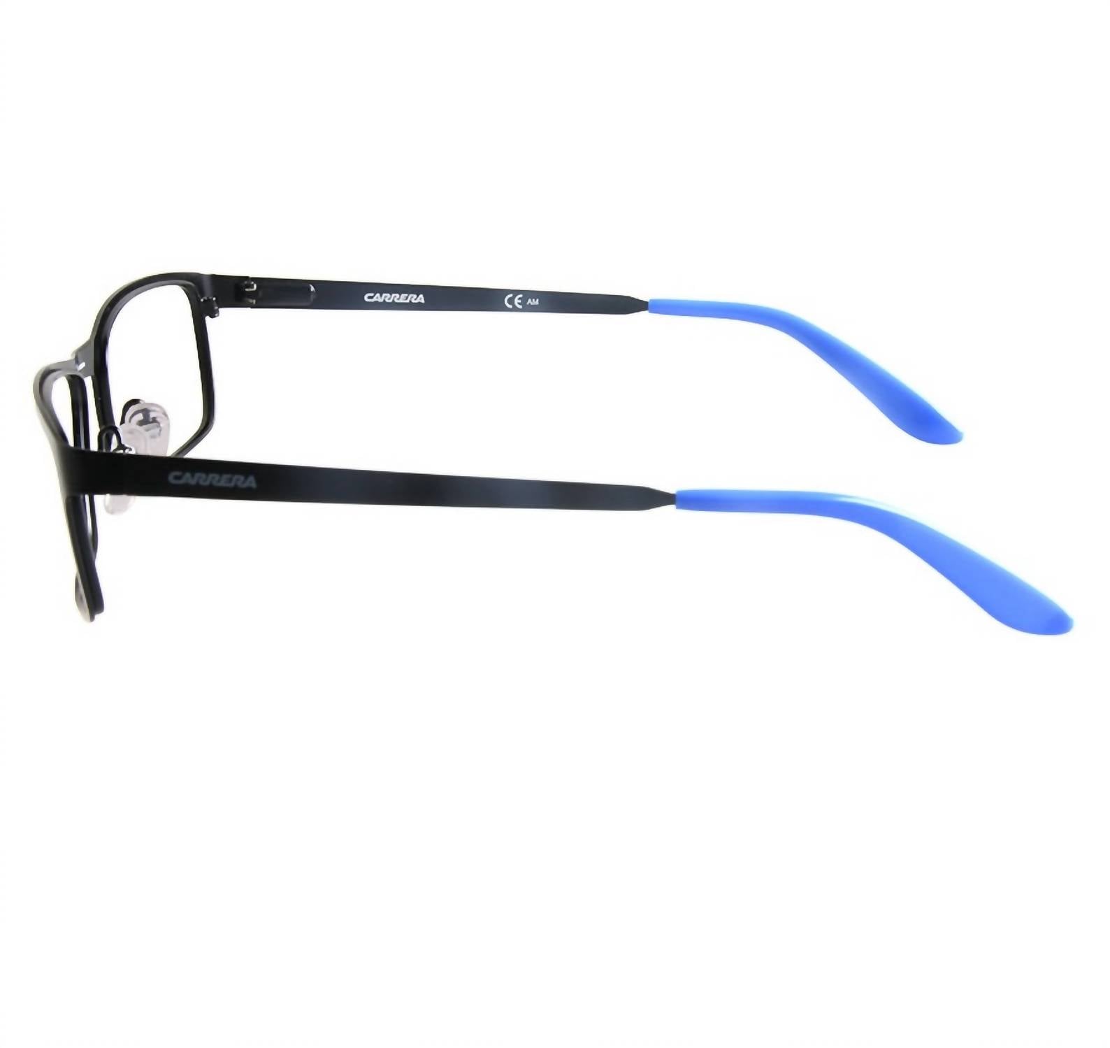 Embrace a sleek and sophisticated style with the Carrera Men's Ca9911 Eyeglasses in matte black. Crafted from durable stainless steel, these full rim rectangular frames are designed for heart, oval, and round face shapes. The lenses are clear and customizable to suit your vision needs, with a comfortable fit highlighted by a 52 mm lens width, 18 mm bridge, and 140 mm arm length. Ideal for adding a touch of refinement to your everyday look.