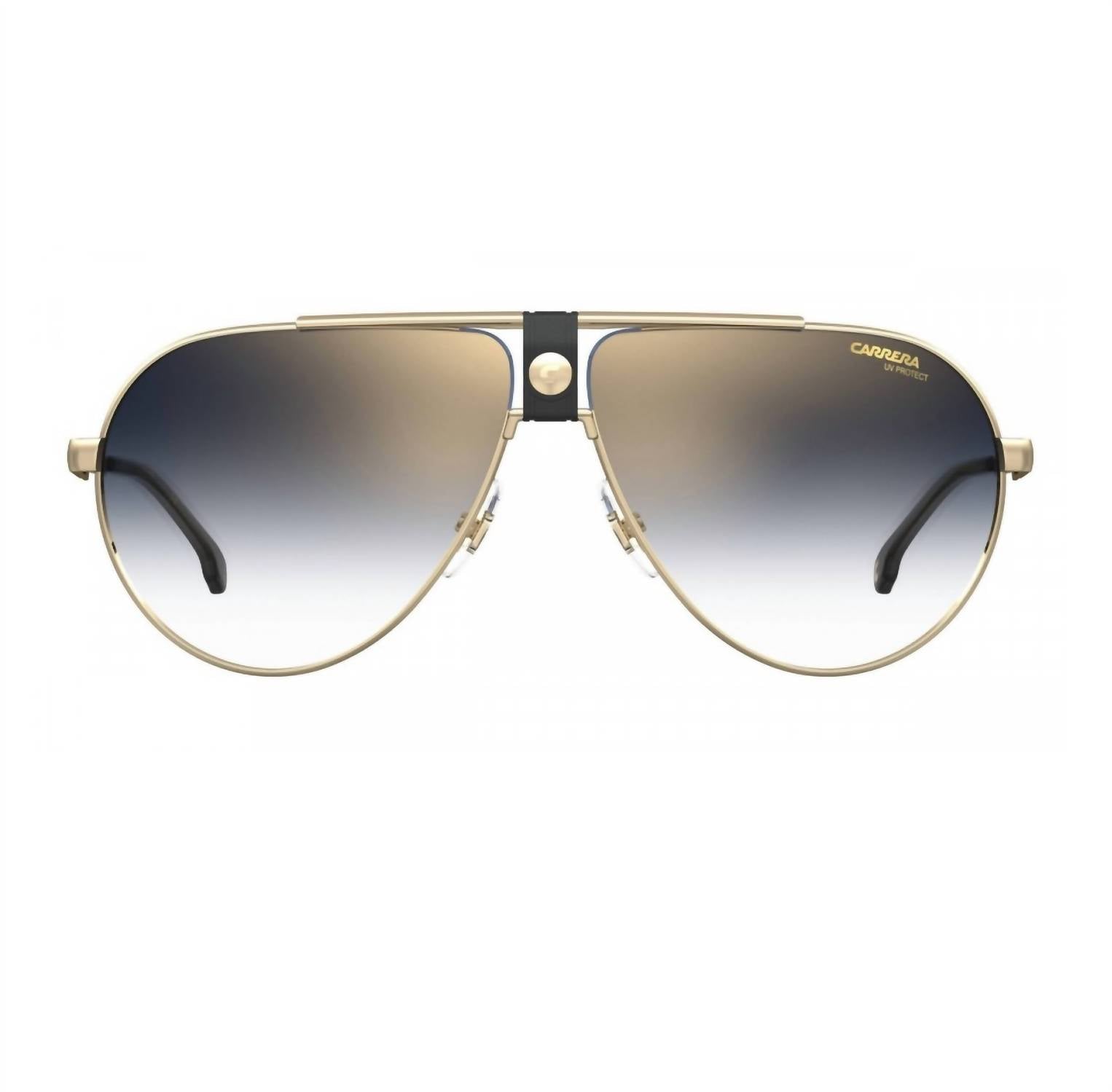 Discover the timeless appeal of the UNISEX 1033/S Sunglasses by Carrera, crafted to make a bold fashion statement. These full-rim aviators feature a sleek black gold metal frame complemented by blue shaded gold flash lenses. Lens width is set at 63 mm, bridge width at 11 mm, and temple length at 140 mm, ensuring a comfortable fit. Embrace this iconic accessory that blends classic design with contemporary flair.