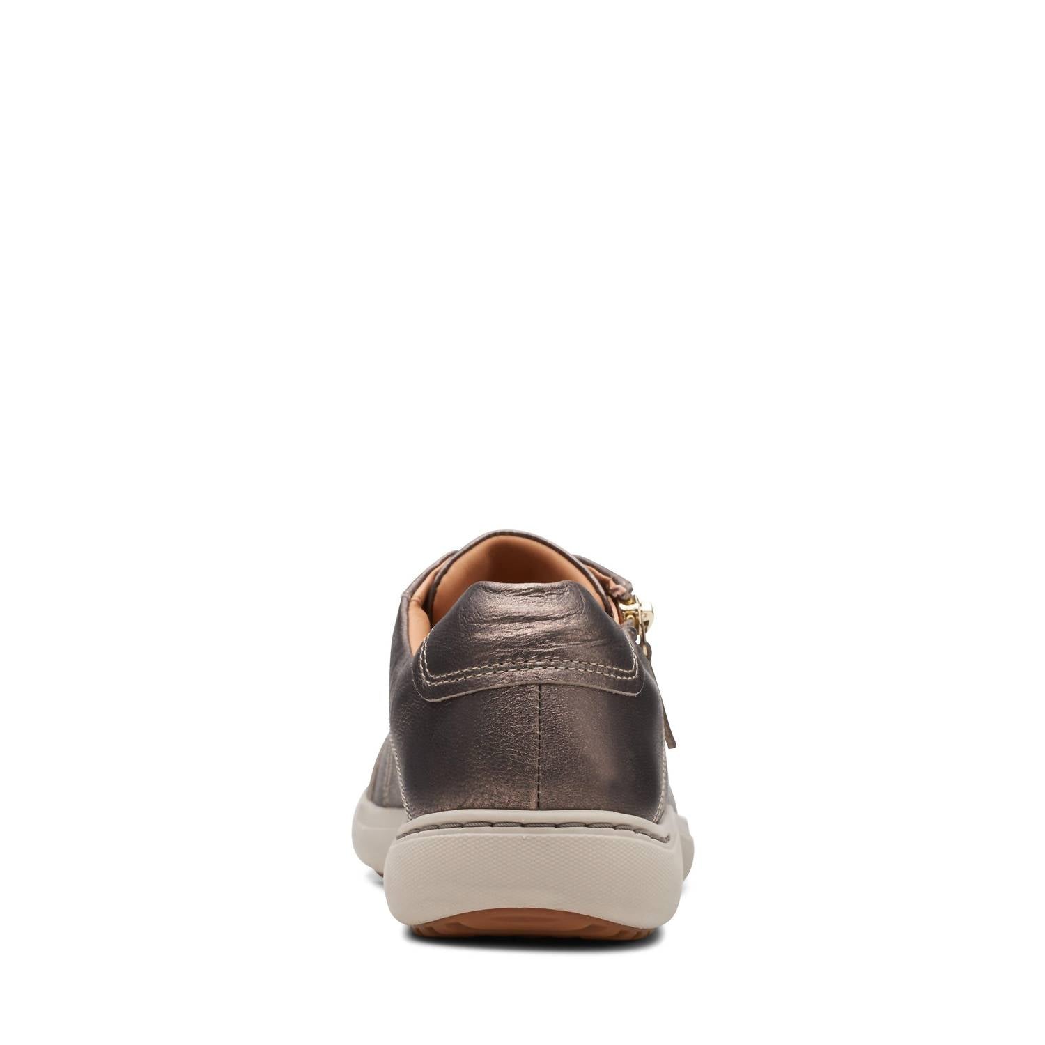 Introducing the Clarks Nalle Bronze Sneaker, an everyday essential crafted for those who value style and comfort. Made from durable snake print leather, this shoe features a supportive Contour Cushion footbed along with a breathable leather lining for all-day freshness. It boasts an easy-access zip closure and a grippy, part-recycled rubber sole for optimum traction. With a heel height of 20mm, the Nalle Bronze offers the perfect balance of style and comfort for busy days.