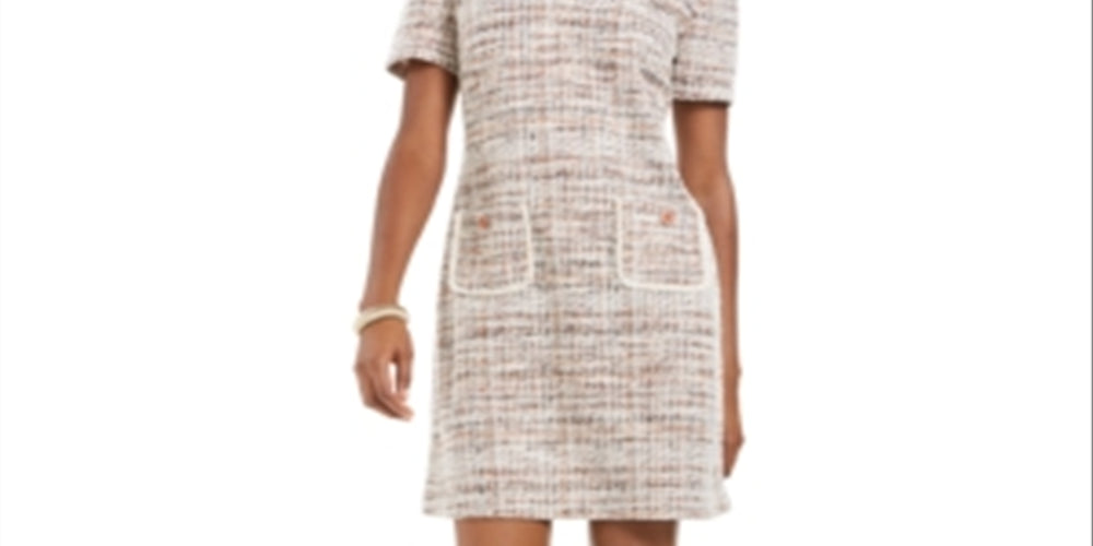 A fresh take on a classic. Connected reinvents a traditional tweed style with modern pockets and a slightly more casual silhouette.| Approx. 37 long from center back neck to hem. Length is based on size 4 and varies 1/4 between sizes| Slit V-neck; Sheath silhouette| Pullover styling| Hip pockets with button & tassel| Unlined