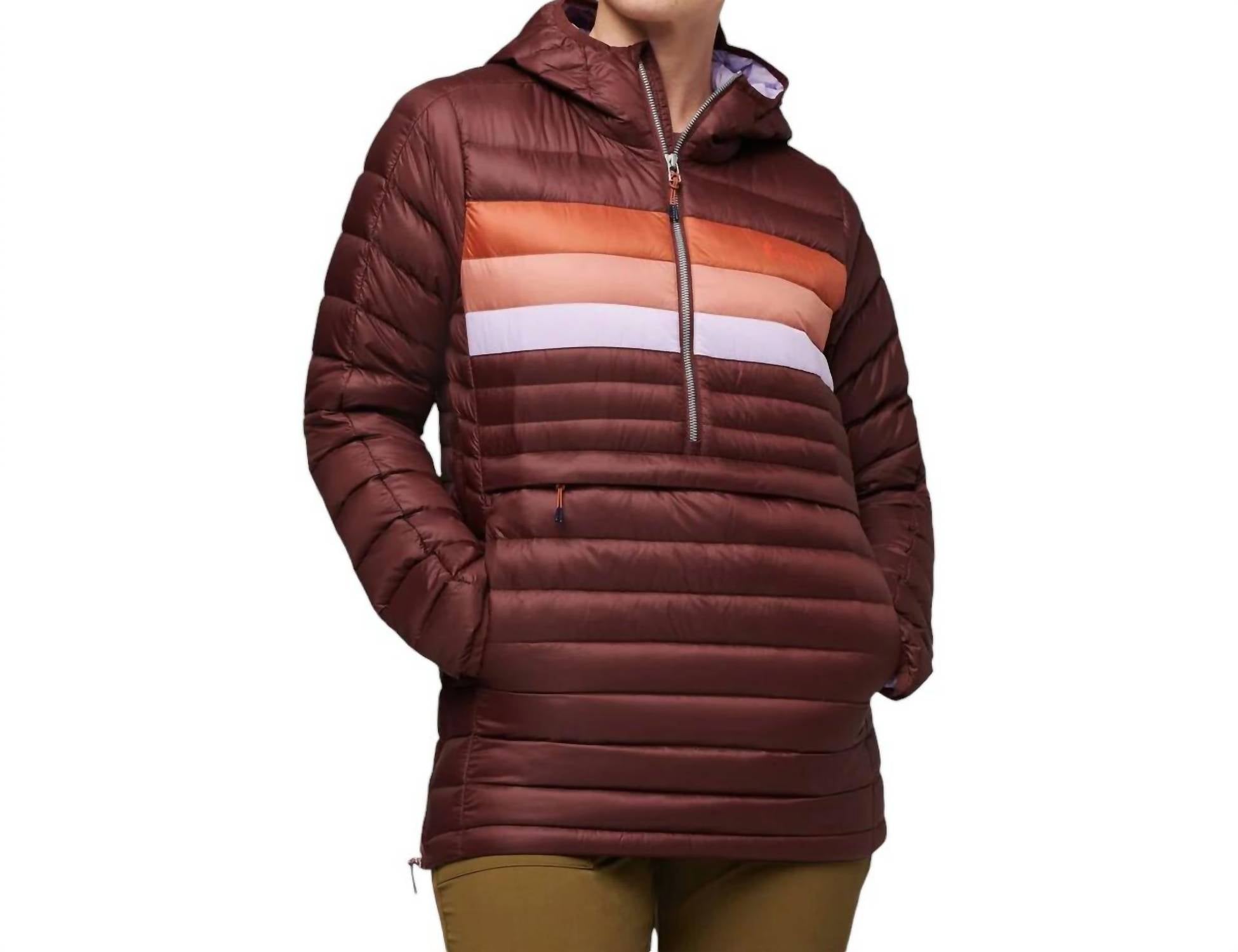 Whether you're running around town or lounging at home, this sweatshirt works for both.This hooded pullover is designed for convenience and warmth, featuring a side zipper for easy on and off. The hand pockets provide added functionality, while a drop-in zippered packable pocket allows for compact storage. Crafted with a shell of 20D giant-ripstop nylon with a DWR finish, it offers durability and water resistance. The insulation consists of 800-fill responsibly sourced, water-resistant down, ensuring lightweight warmth. Elastic binding at the cuffs enhances fit and comfort, making this pullover perfect for outdoor activities.