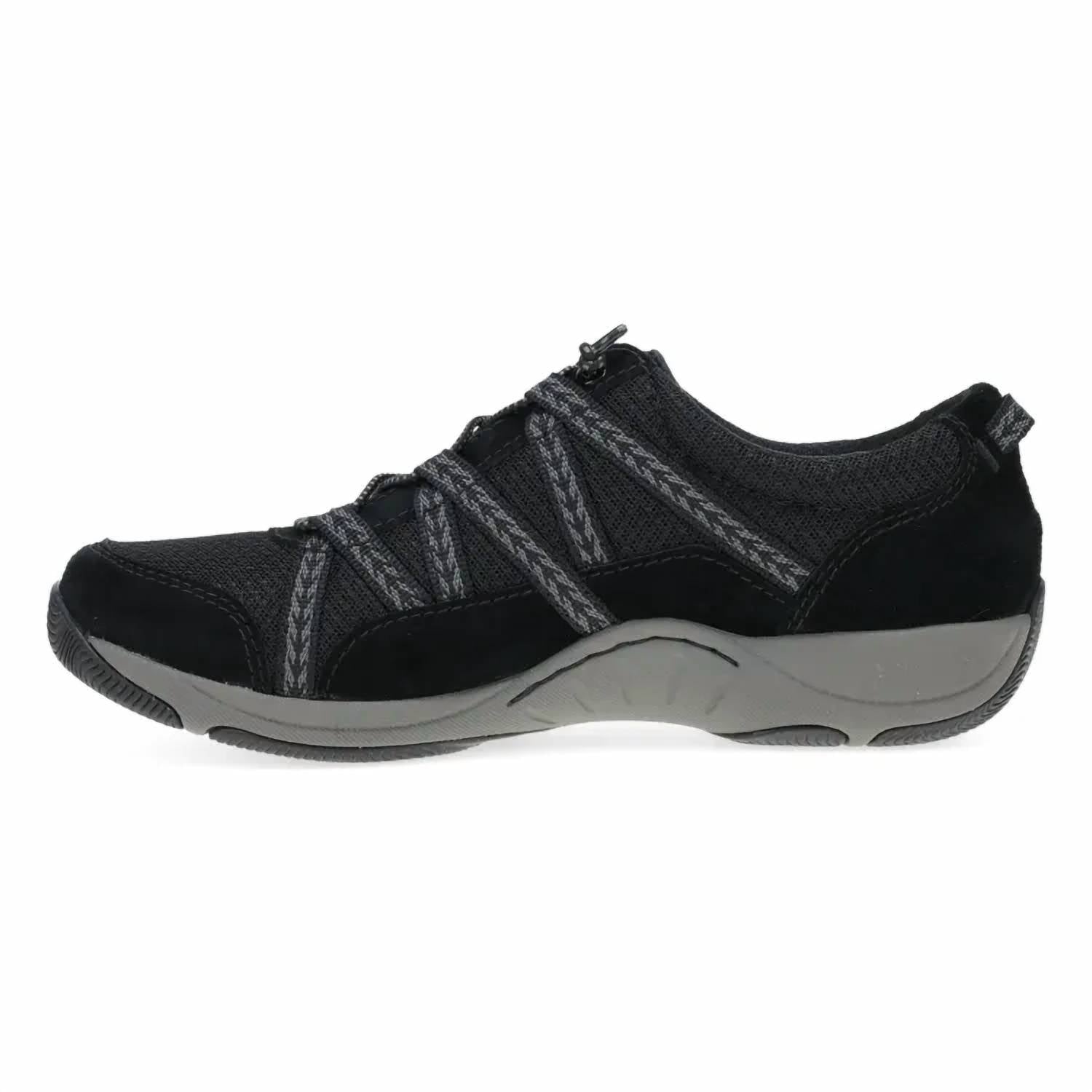 When fashion and function come together seamlessly. Harlyn provides premium support and lightweight performance in a sneaker that will always keep you moving forward. Features & Specs Accommodates most standard and custom orthotics. UPPER: Chrome-free leather and recycled nylon. Suede treated with 3M Scotchgard™ for stain resistance. LINING: Dri-Lex® Dri-Freeze® for moisture management and moisture odor control. SOCKLINING: Dri-Lex® Dri-Freeze® for moisture management and odor control. REMOVABLE FOOTBED: Energy-return EVA with Dansko Natural Arch® technology for all-day comfort and support. MIDSOLE: Lightweight, energy-return EVA with nylon shank for stability. OUTSOLE: Natural rubber for long-lasting wear. ELASTICIZED LACES Care Instructions Wipe with a damp cloth to remove surface dirt. Use Dansko Nubuck and Suede Block and Brush to remove surface stains. For maximum water and stain protection, we recommend using Dansko Suede and Nubuck Protector Spray immediately after purchase. Measurements Heel Height: 1 in Platform Height: 0.5 in