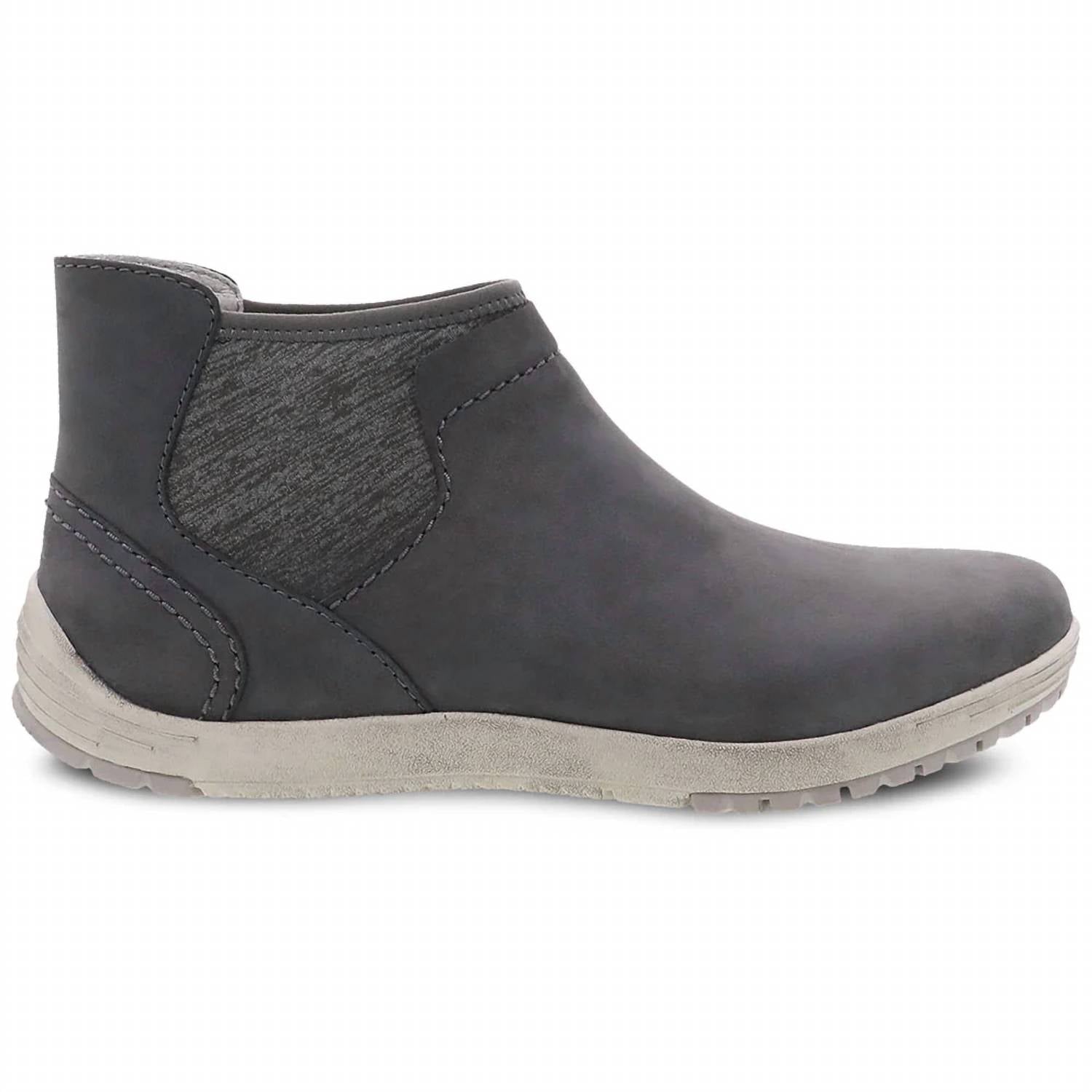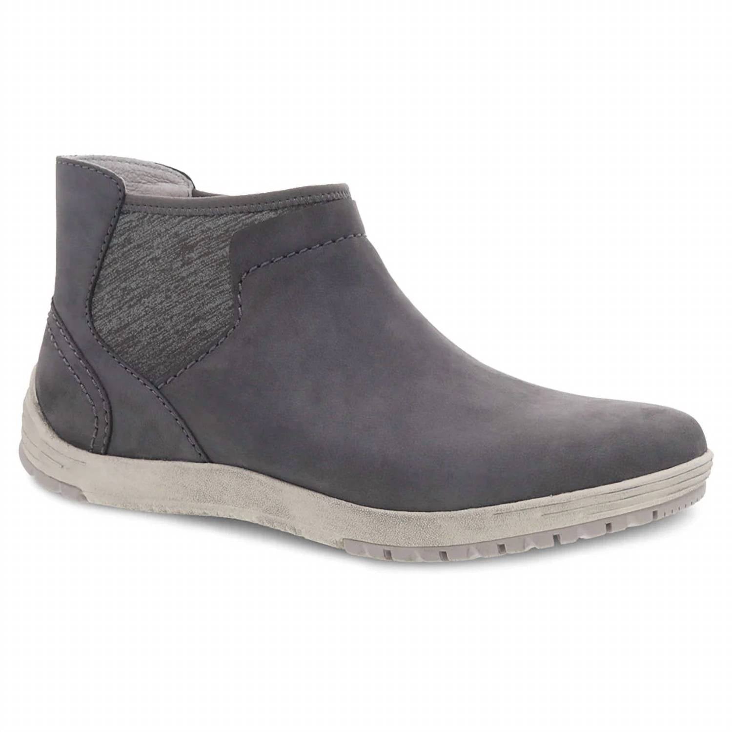Say hello to the perfect, most versatile boot. The ankle height makes this style easily transition from day to night. Wear them with your favorite skinny jeans and tee for a more laid back look, or pair them with your favorite mini dress and jacket for a night out on the town. Introducing the Women's Lizette Waterproof Bootie by Dansko, crafted for the modern woman who values style and functionality. These booties are expertly made from waterproof leather and feature a round toe design in a sleek grey hue. Enjoy all-day comfort with an EVA footbed incorporating Dansko Natural Arch Plus™ technology, complemented by a lightweight EVA midsole and rubber outsole. Stay fresh with Dri-lex Dri-Freeze Eco vamp linings, treated with Aegis® Microbe Shield for superior odor control, and a chrome-free leather socklining, perfect for every season.