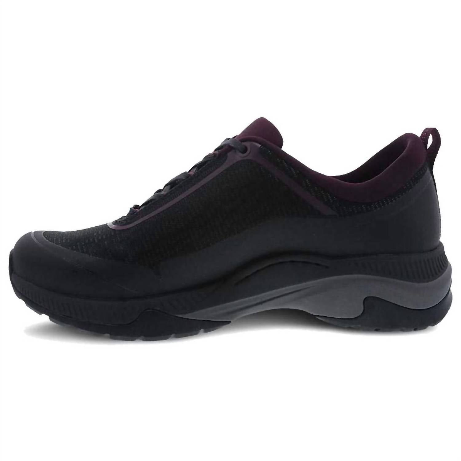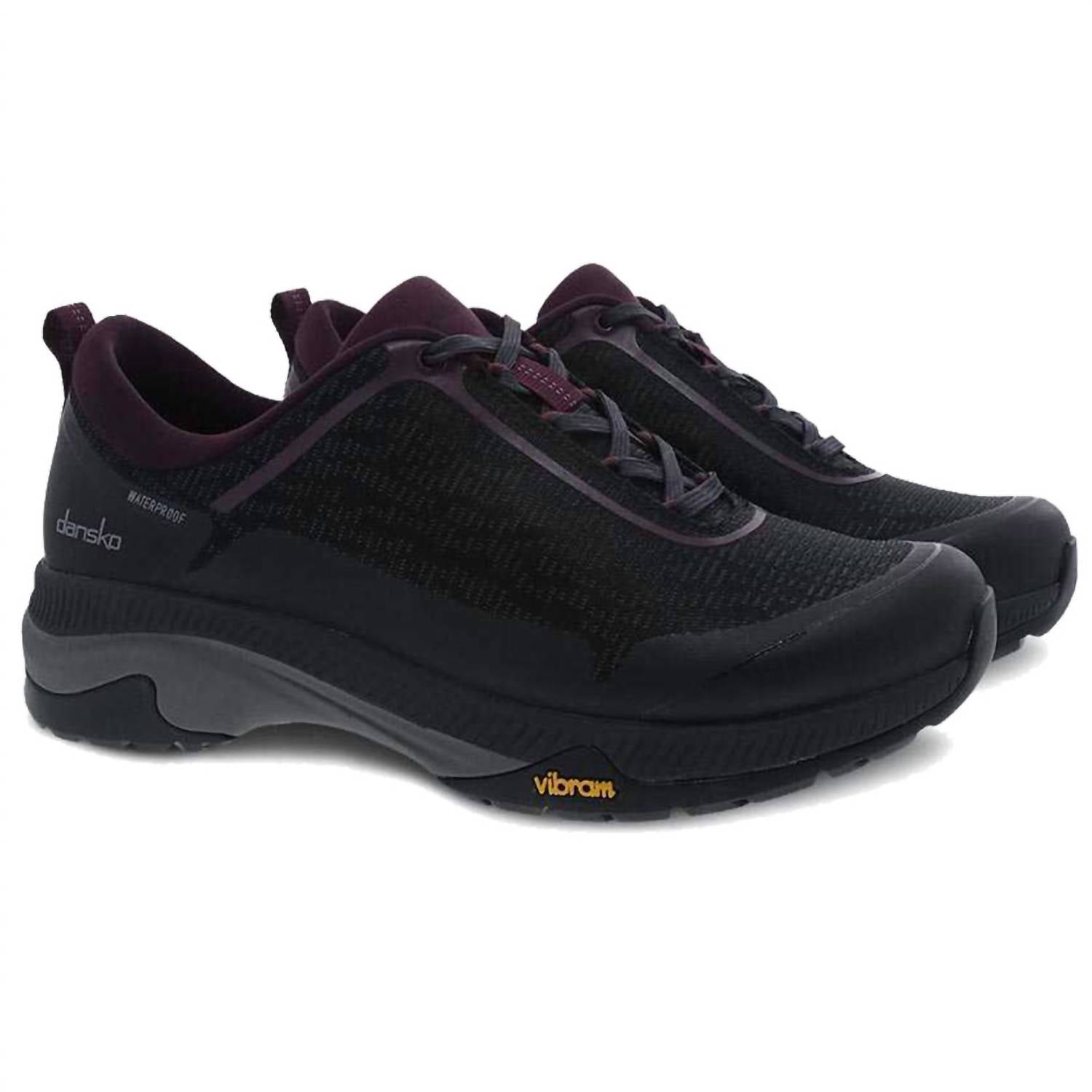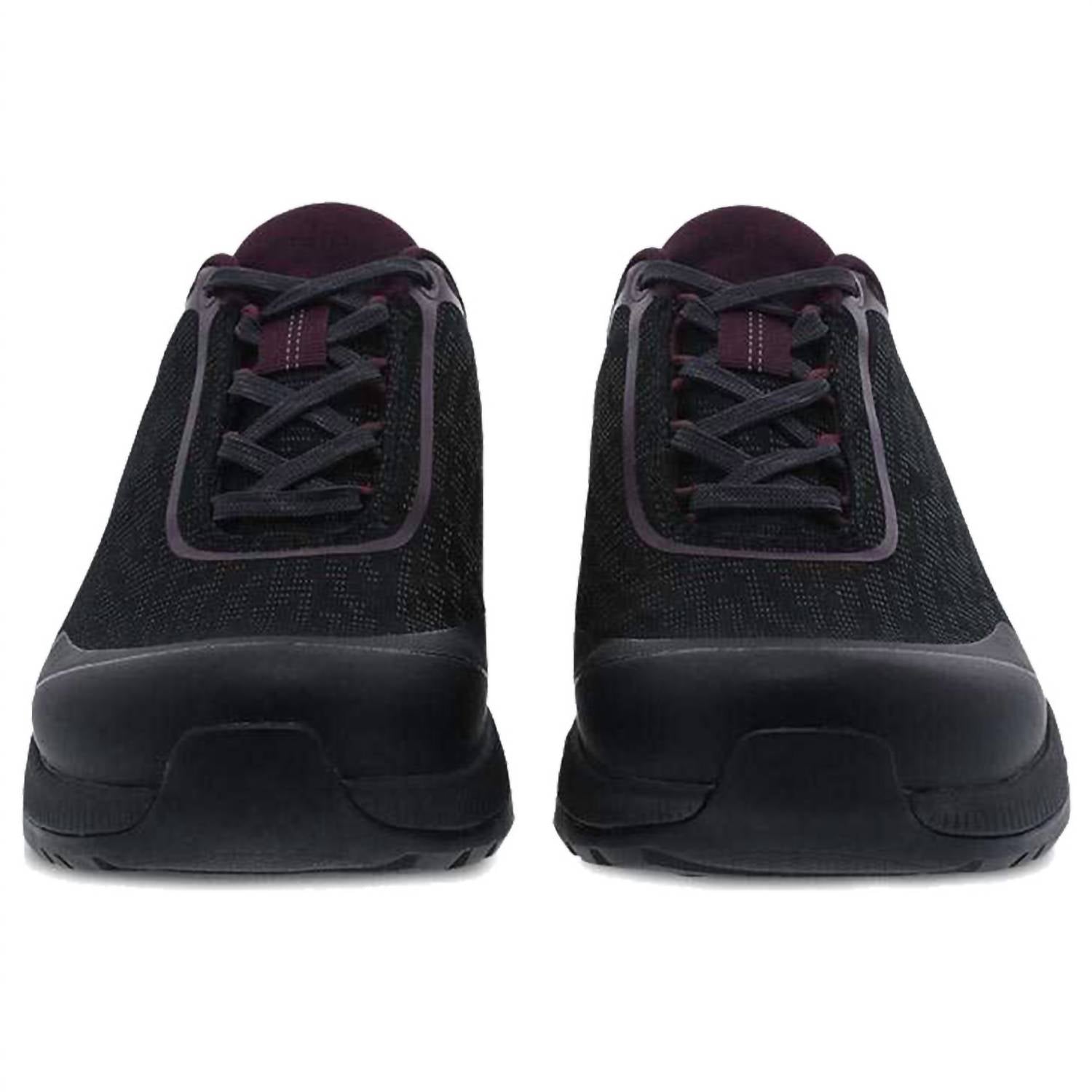 Get your daily steps in with these adorable sneakers. Experience all-day comfort with the Women's Makayla Comfort Shoes by Dansko, ideal for versatile outdoor adventures. These black sneakers feature a waterproof mesh upper and odor-controlling Aegis Microbe Shield-treated linings, ensuring protection and freshness. For unrivaled support, the shoes incorporate Dansko Natural Arch Plus technology and a removable energy return EVA footbed with a heel shock absorption pad. Complete with a slip-resistant Vibram rubber outsole, these sneakers guarantee stability on varying surfaces, including snow and dry ground.