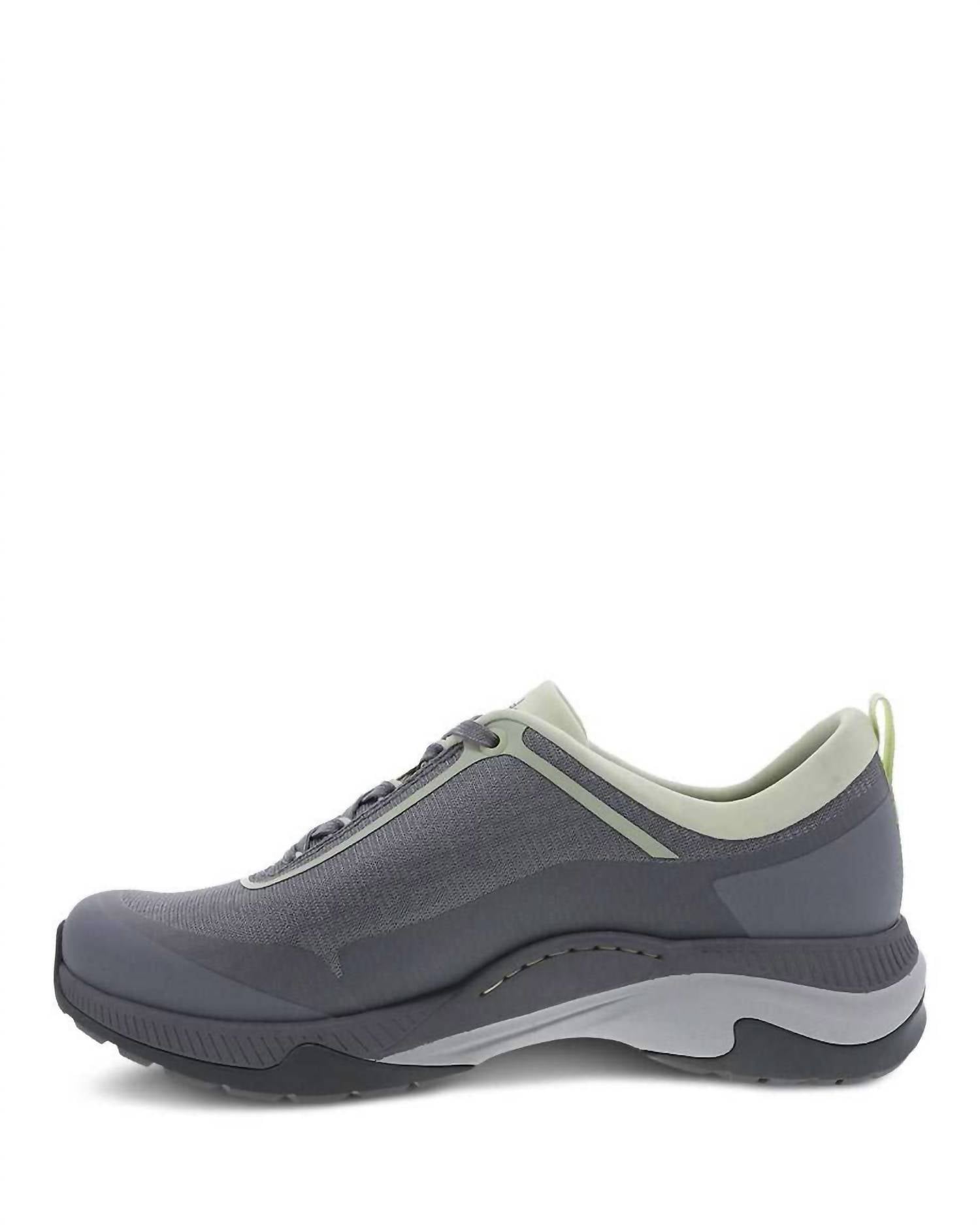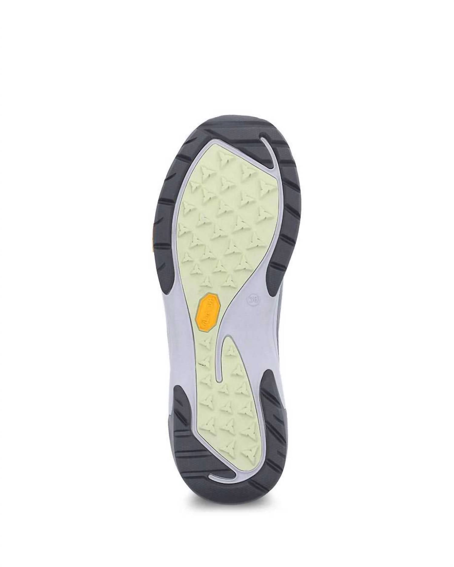 When fashion and function come together seamlessly. Textile linings treated with Aegis® Microbe Shield odor control. Waterproof construction. Waterproof mesh upper. Dri-Lex® recycled textile socklining. Dansko Natural Arch Plus™ technology. Removable energy return EVA footbed with heel shock absorption pad and propel forepart. Lightweight cushioned EVA midsole. Durable Vibram® rubber outsole is slip-resistant
