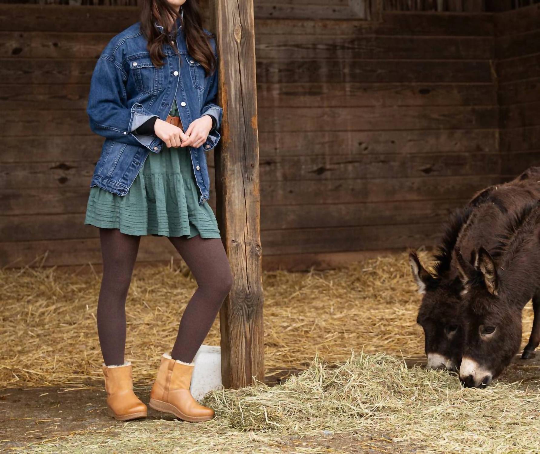 Rainy day? No problem! The cutest and most comfortable rainboots of the season. The Women's McKenzie Boot by Dansko in Tan is designed for ultimate winter comfort and style. With their high-quality leather upper and shearling-lined shafts, these boots offer warmth for chilly days. Featuring patented stapled construction, a dual-density cork/EVA midsole for support, and a durable lightweight rubber outsole, they provide both comfort and longevity. Elevate your winter wardrobe with this workwear-inspired piece, perfect for medium-width feet, and enjoy breathable chrome-free leather sock lining for added freshness.