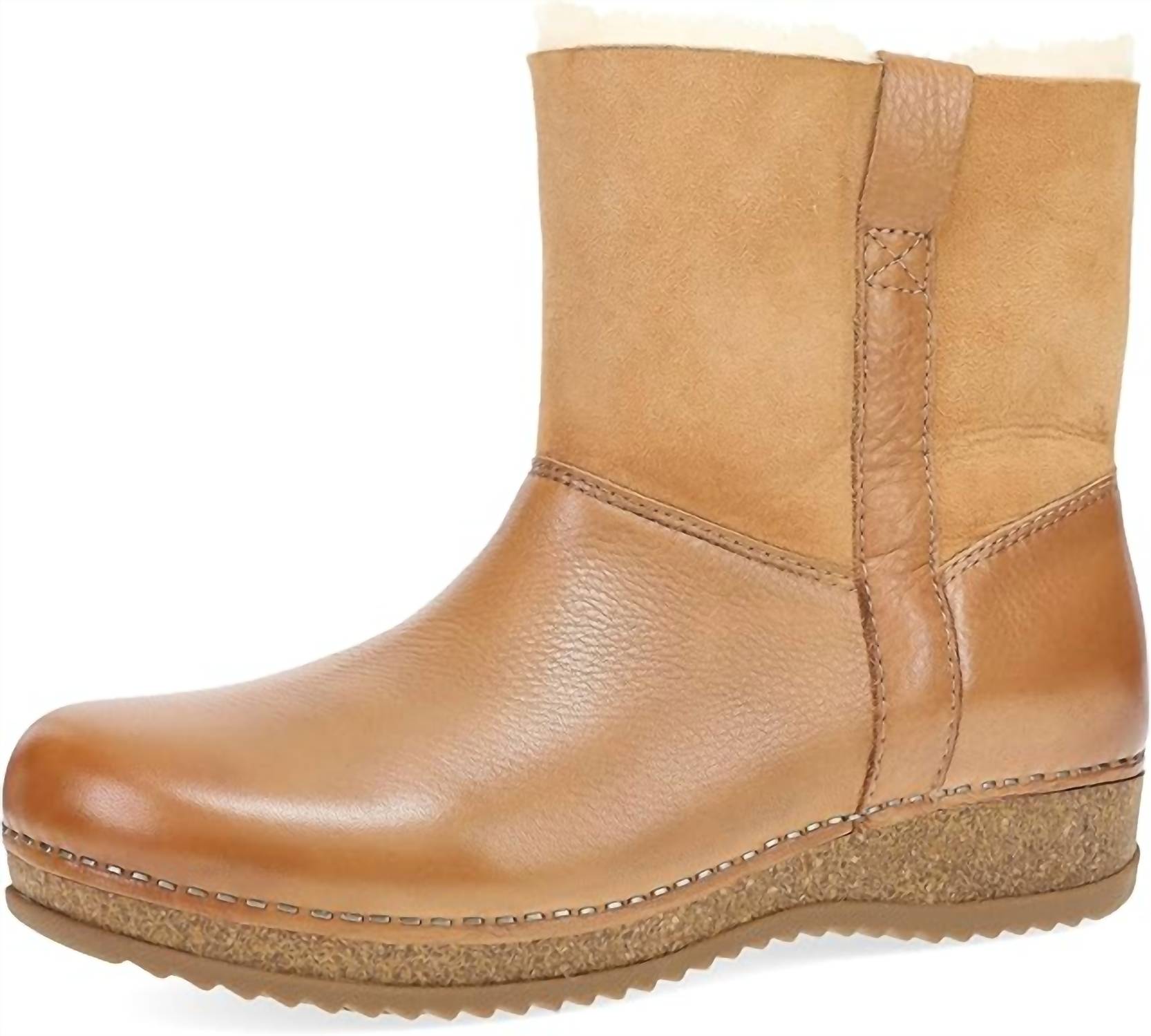 Say hello to the perfect, most versatile boot. The ankle height makes this style easily transition from day to night. Wear them with your favorite skinny jeans and tee for a more laid back look, or pair them with your favorite mini dress and jacket for a night out on the town. Get ready for the coziest winter ever with McKenzie. These boots combine a shearling-lined shaft and cork-based soles for styles that stand up to the cold. Leather upper. Fur lining and ethylene vinyl acetate insole. Slip-on style in a round toe silhouette. Water repellent design. Lightweight rubber outsole.