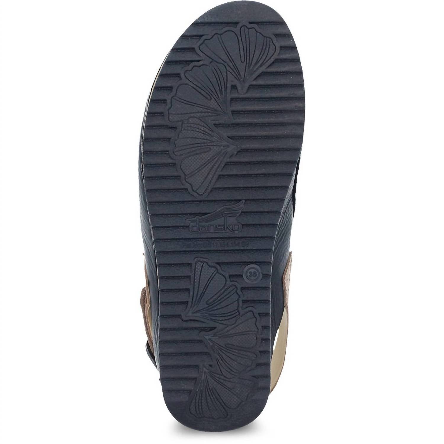 Slip them on and go! Step into style and comfort with the Women's Merrin Clogs by Dansko, an innovative twist on the classic mule. Featuring an ankle strap for added support and a sturdy cork midsole, these clogs are crafted from high-quality olive burnished suede. For moisture management and odor control, the interior combines leather and textile linings with Soft Dri-Lex® Eco lining. The clogs feature a low wedge heel measuring 1 1/4" to 2", and a round toe shape. To clean, use the Dansko Nubuck Suede Block and Brush, and apply Dansko Suede and Nubuck Spray for maintenance.