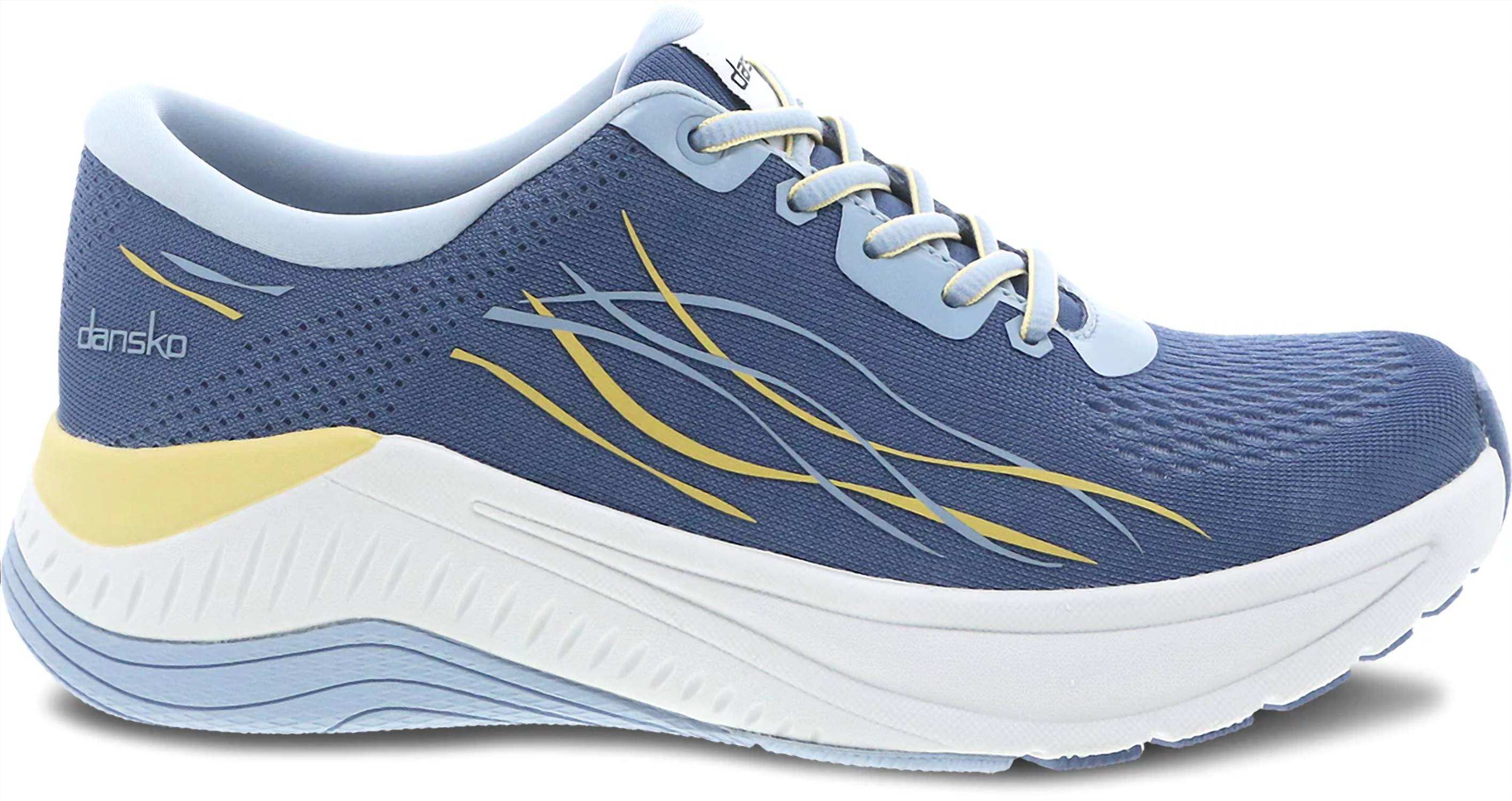 When fashion meets function. Step up your comfort game in Blue, designed for the active lifestyle. Feature a supportive footbed with Dansko Natural Arch Plus technology. Offering excellent arch support and heel stability. Alongside Dri-lex recycled textile socklining for moisture management. Crafted with recycled mesh uppers treated with 3M Scotchgard protector for enhanced stain resistance. Boast a lightweight cushioned EVA midsole and a durable rubber outsole for lasting performance. Engineered for ultimate comfort and support during all activities.