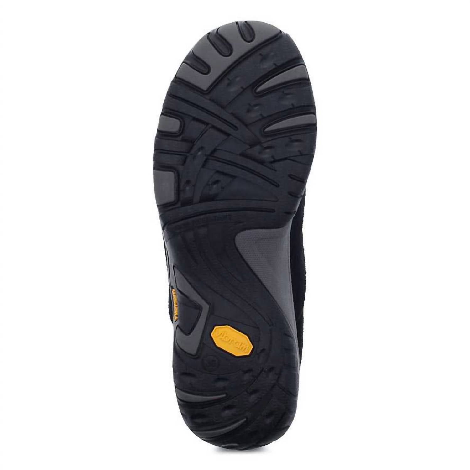 Step into ultimate comfort and style with the Women's Parson Clogs by Dansko. Crafted with waterproof leather uppers, these black clogs are designed for outdoor resilience on snow and dry surfaces, thanks to the slip-resistant Vibram® rubber outsole. Inside, they feature a removable triple-density footbed ensuring arch support and shock absorption, while DuPont™ Sorona® fiber offers superior moisture management. For added durability, the 1.5" flat heel includes a built-in shank for stability and support, and the exterior is protected against stains with 3M Scotchgard™ technology.