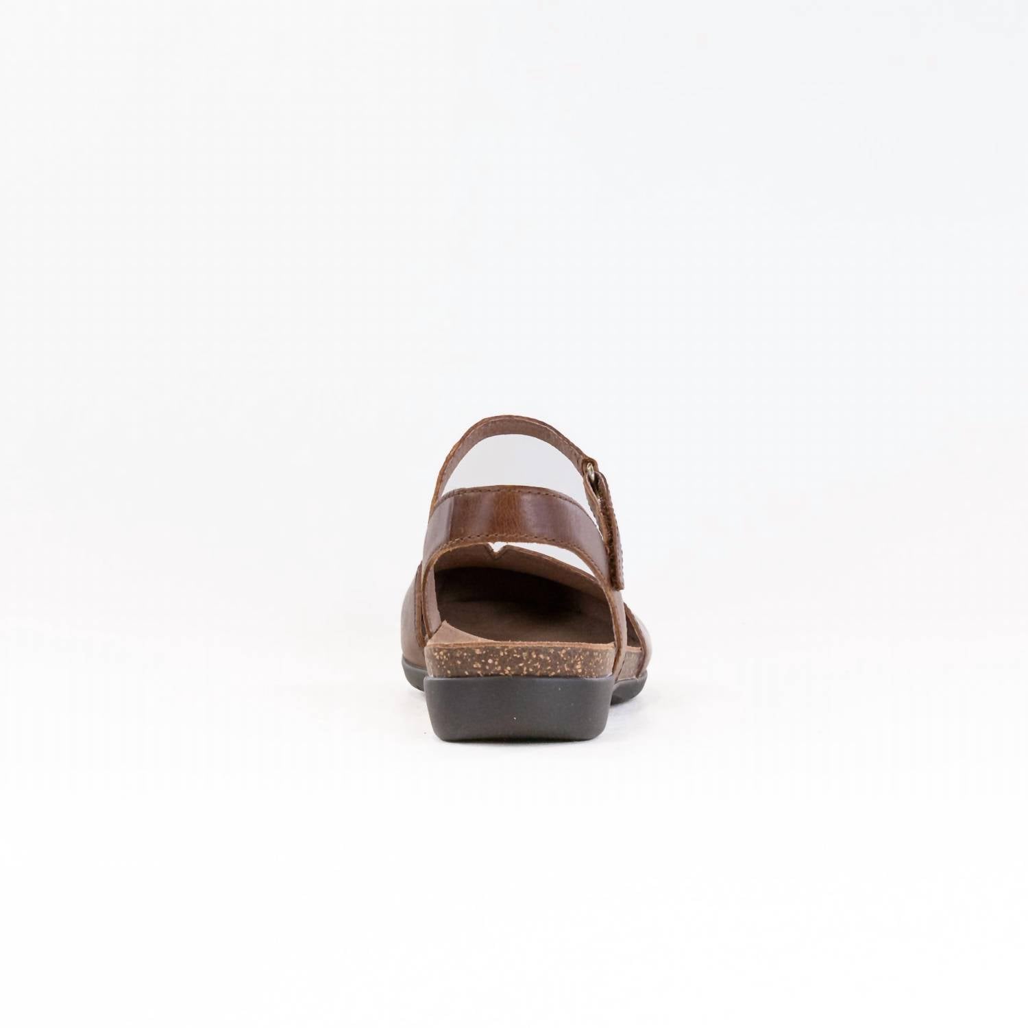 Discover the Women's Rowan Sandal by Dansko, a versatile hybrid that combines the casual appeal of sandals with the comfort of closed toe shoes. Crafted from tan waxy burnished leather, these sandals feature leather linings and a molded memory foam footbed for unparalleled comfort. The lightweight EVA and cork midsole, partnered with a durable rubber outsole, ensure lasting wear. This minimalist design is perfect for spring and summer occasions like dinner parties or Easter celebrations.