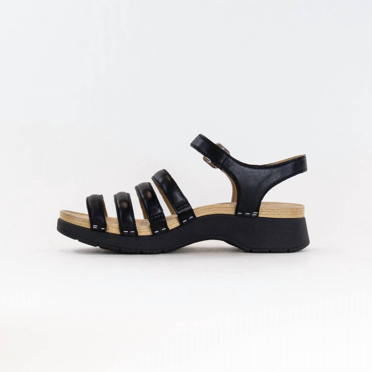 This sandal will take you from brunch to dinner and everything in between. Step into style with the Women's Roxie Sandal by Dansko, a minimalist choice perfect for a dinner party. This sandal features simple straps in black, made from high-quality leather for a sophisticated touch. Designed with patented stapled construction, it includes a soft lining, chrome-free suede socklining, cushioned energy-return PU footbed, and a lightweight, contoured BPU midsole for unparalleled comfort. The flexible TR rubber outsole ensures ease of movement, while the open toe and flat heel make it ideal for the spring season.