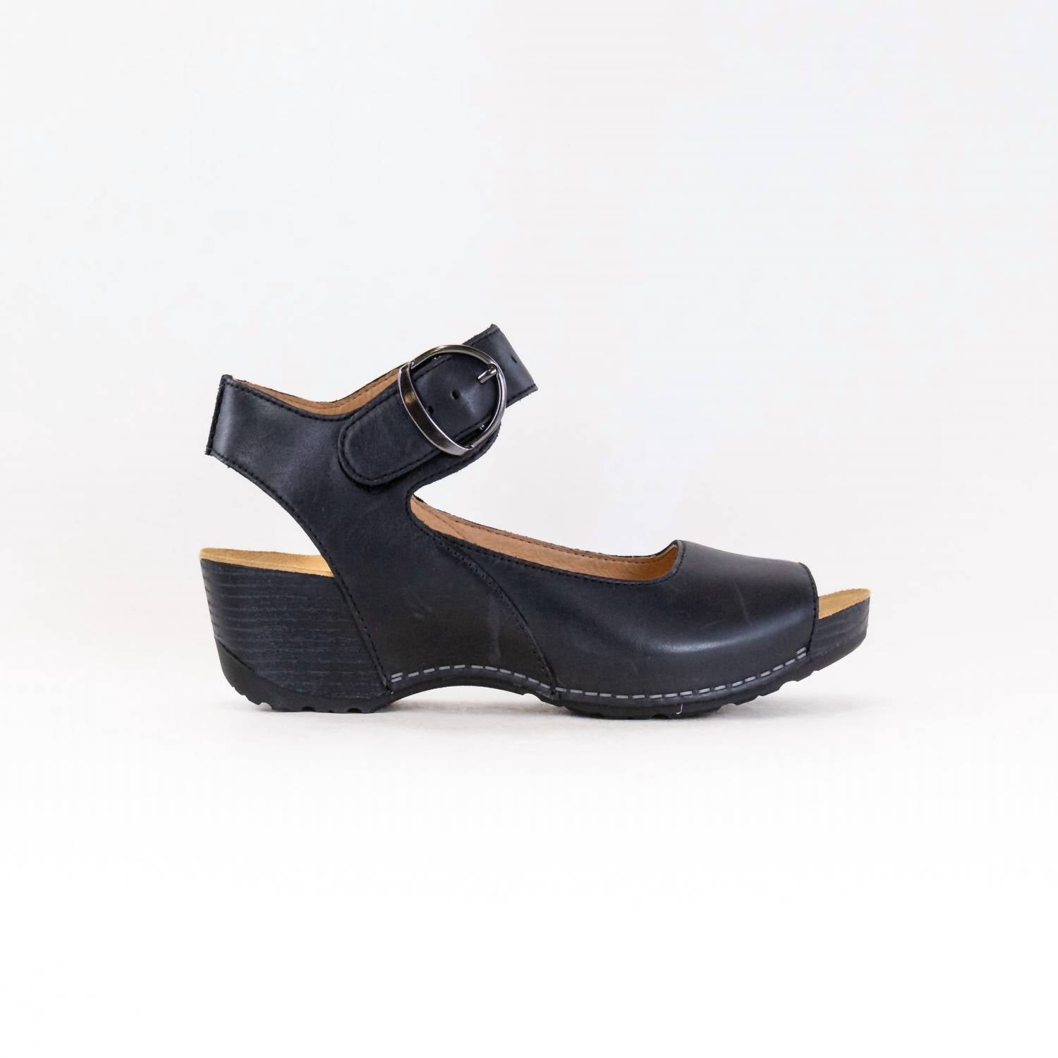 Enhance your spring wardrobe with the Women's Tiana Sandal by Dansko, featuring burnished leather uppers and leather linings that ensure all-day comfort. This sandal employs a stapled construction for durability and includes a cushioned PU footbed along with a fully contoured, lightweight rigid PU midsole for superior support. Designed with a wedge heel and open toe, the Tiana is equipped with a rubber outsole for long-lasting wear. Ideal for engagements or Thanksgiving occasions, this minimalist piece radiates style and comfort.