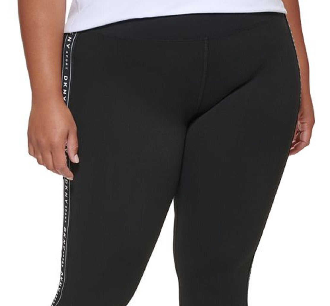 DKNY Women's High Waisted 7/8 Logo Taping Leggings Black Size 3X