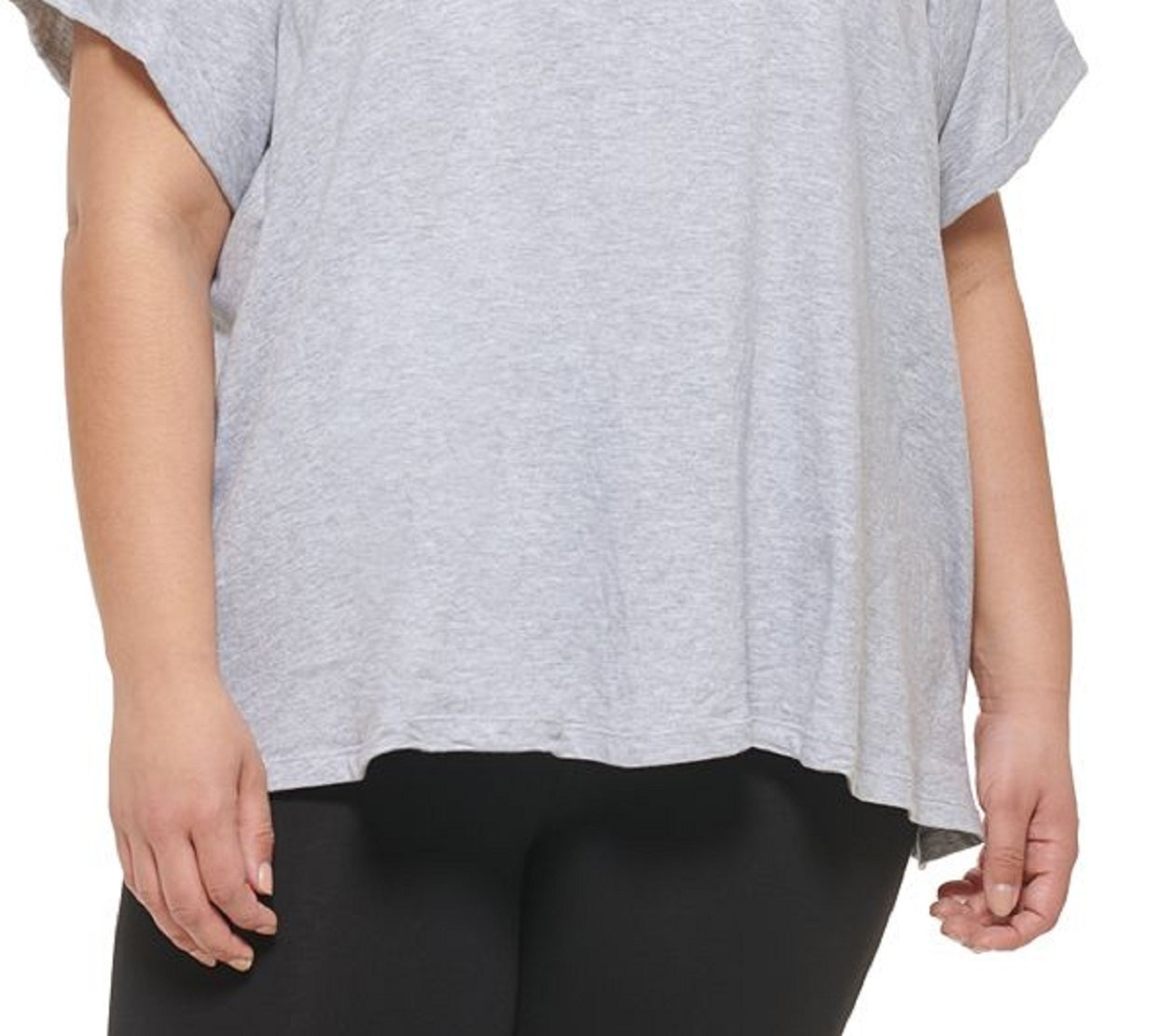 DKNY Women's Knot Front Metallic Logo T-Shirt Gray Size 2X