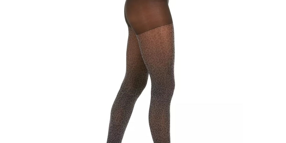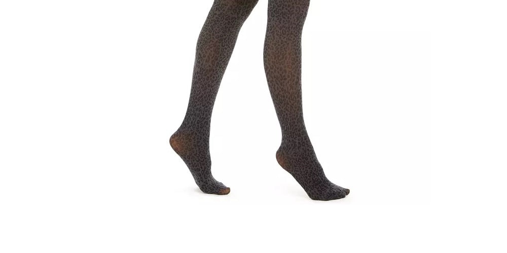 DKNY Women's Leopard-Print Tights Gray Size Small