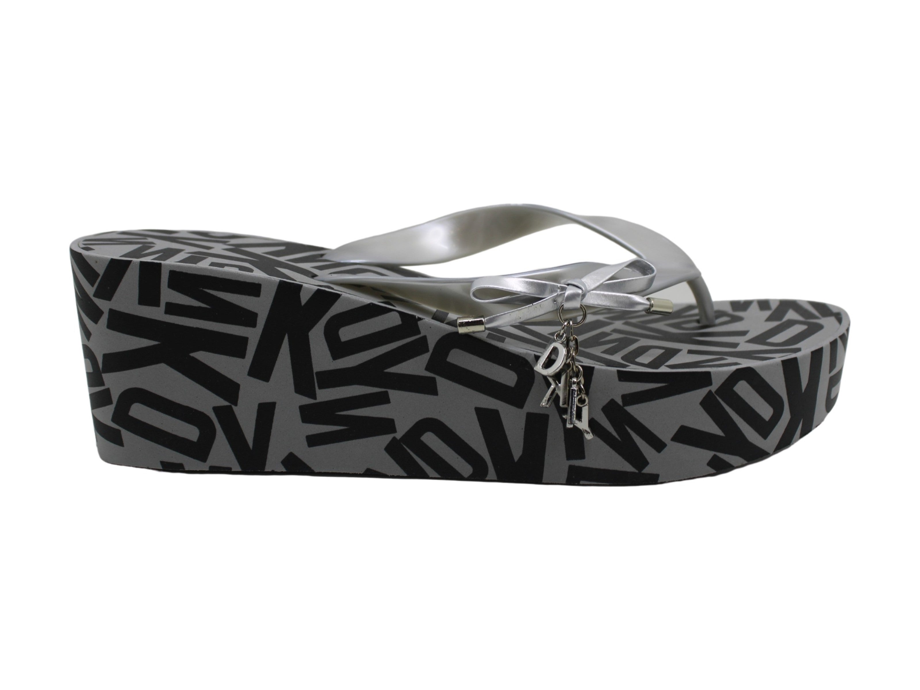 DKNY Womens Nola Wedge Sandals Thong Slip on Silver Size 9M