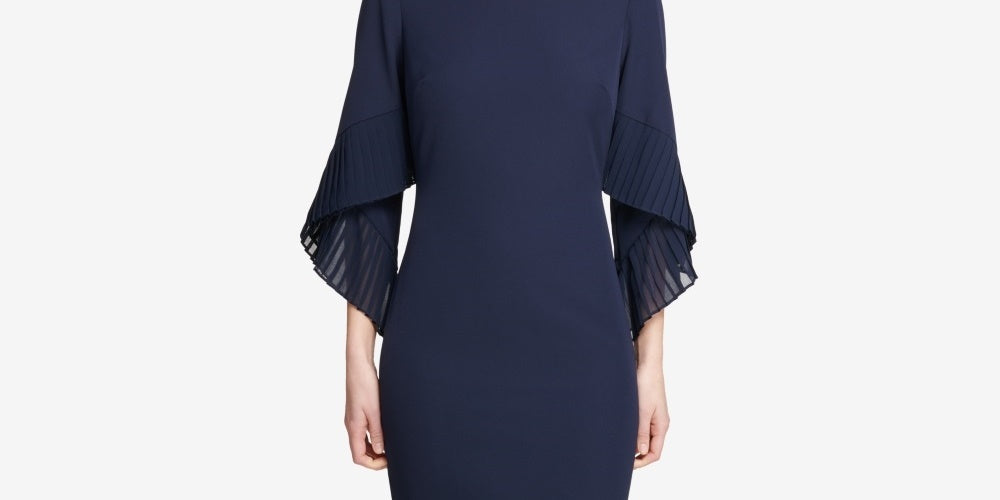 DKNY Women's Pleated Bell-Sleeve Sheath Dress Navy Size 16