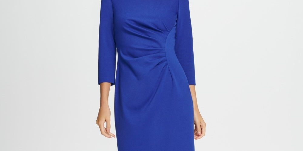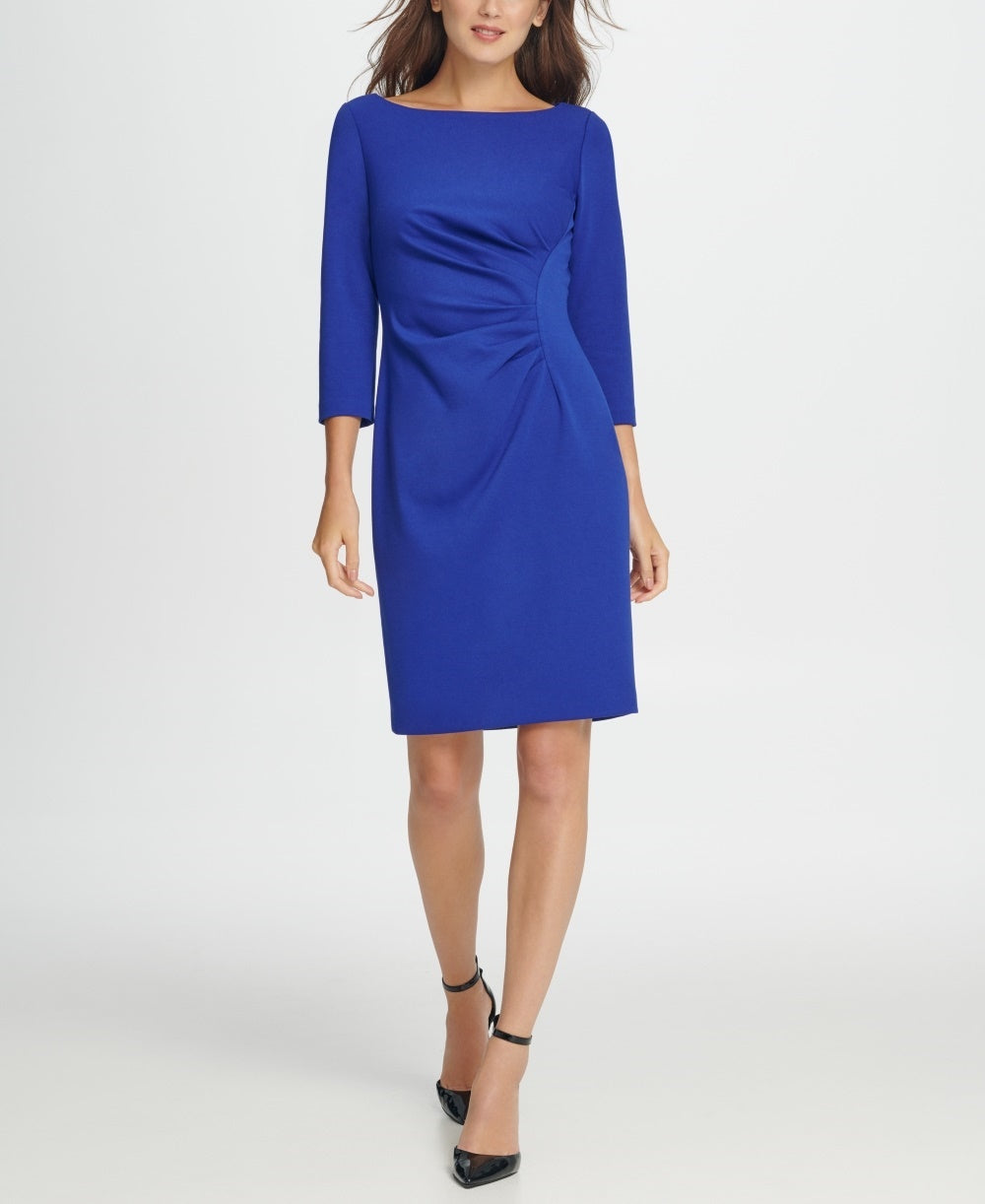 DKNY Women's Ponte Side Ruche Sheath Dress Blue Size 2