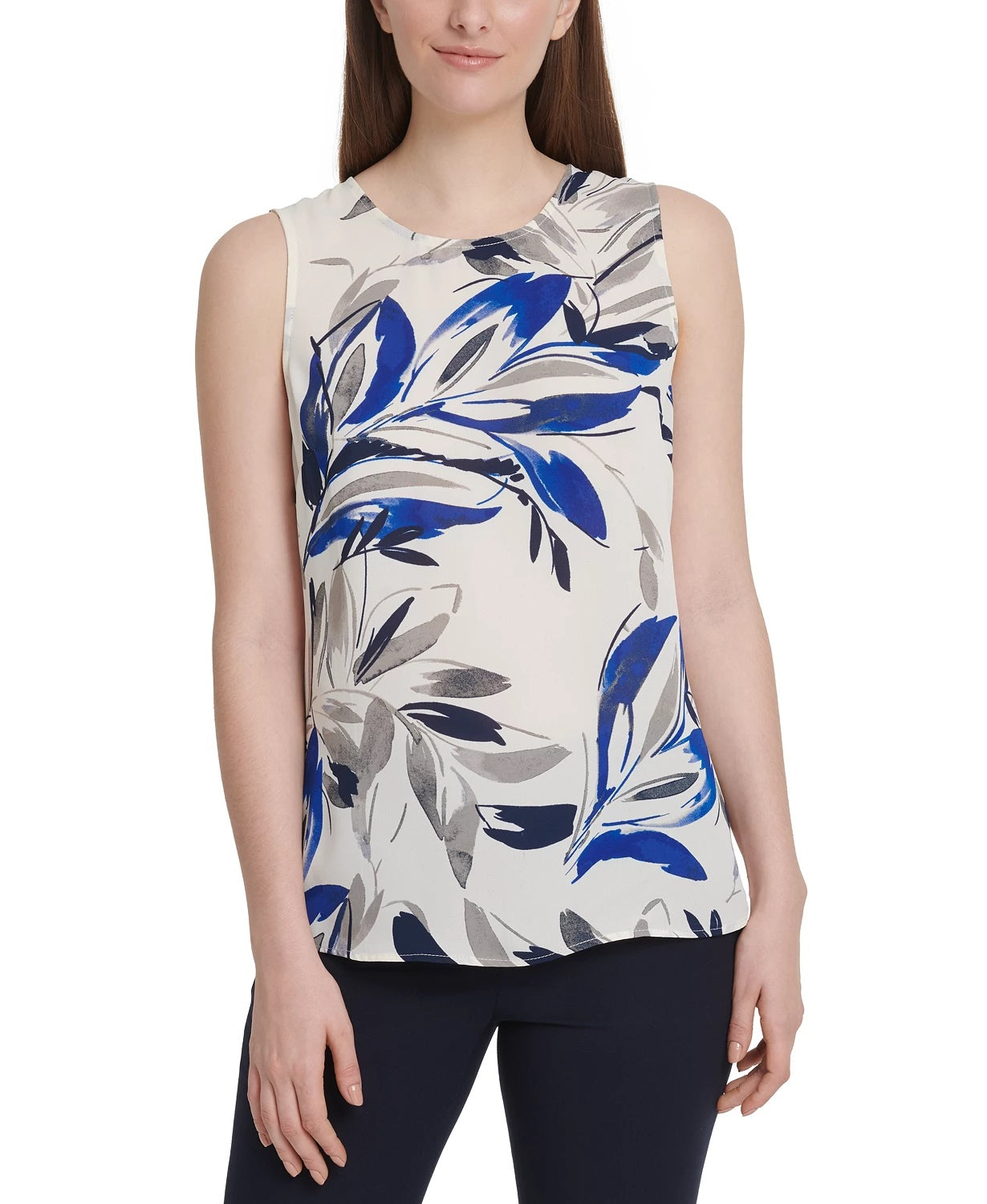DKNY Women's Printed Scoop-Neck Top Dark Blue Size Medium