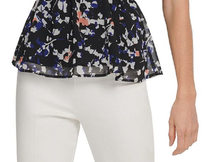 DKNY Women's Printed Short Sleeve Jewel Neck Top Black Size Large