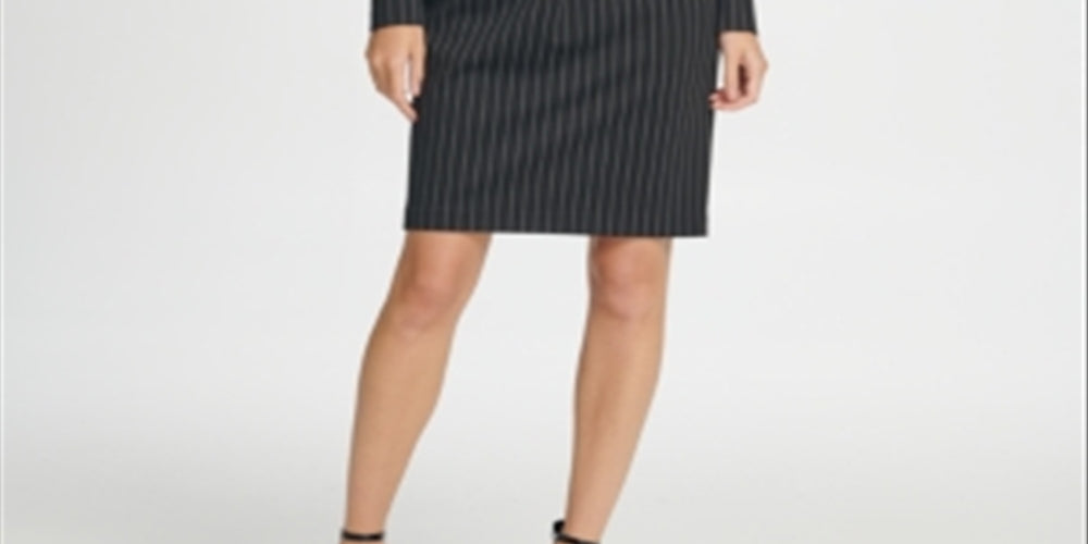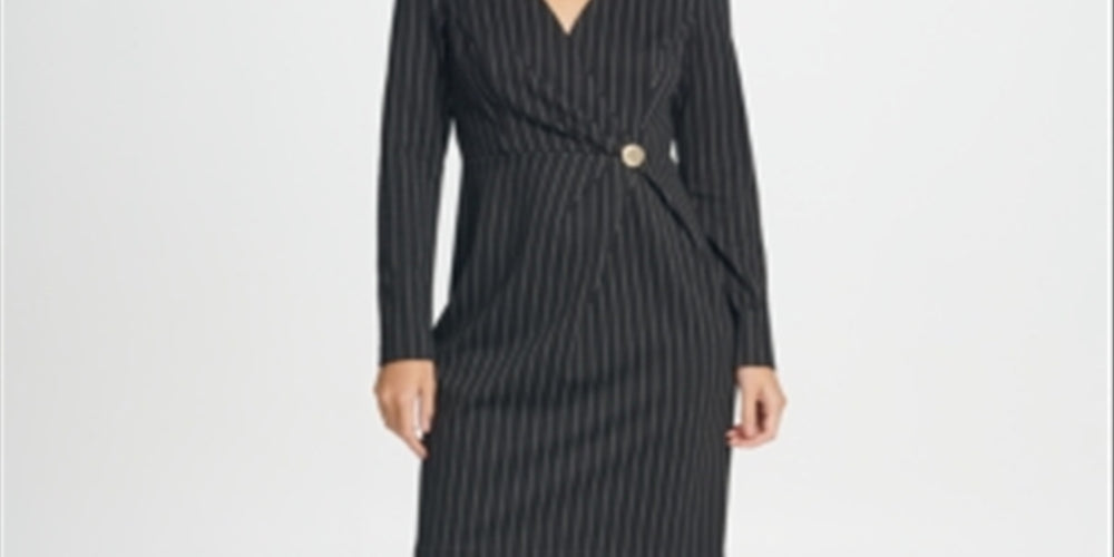 DKNY Womens Rhinestone Pinstripe Long Sleeve V Neck Above The Knee Wrap Dress Wear To Work Dress