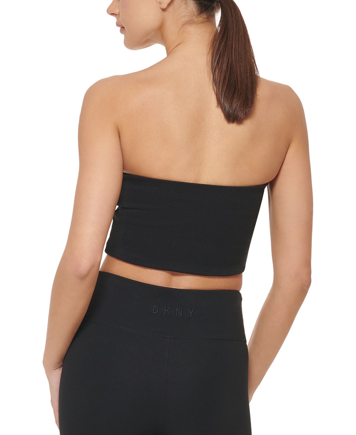 Sleek and sporty| this tube top from DKNY features a classic ribbed finish and embroidered logo at the back.| Bandeau neckline; strapless; embroidered logo at center back; ribbed throughout| Cotton/elastane| Machine washable| Imported