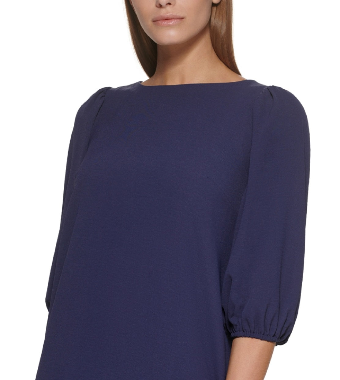 Effortlessly chic| DKNY's minimalist trapeze dress with a balloon sleeve and hem design boasts a relaxed yet figure-flattering silhouette that offers endless styling options for a versatile addition to your wardrobe.| Approx. 34-1/4 long from center back neck to hem. Length is based on size 4 and varies 1/4 between sizes | Crewneck| Back keyhole with button closure| Elbow-length blouson sleeves