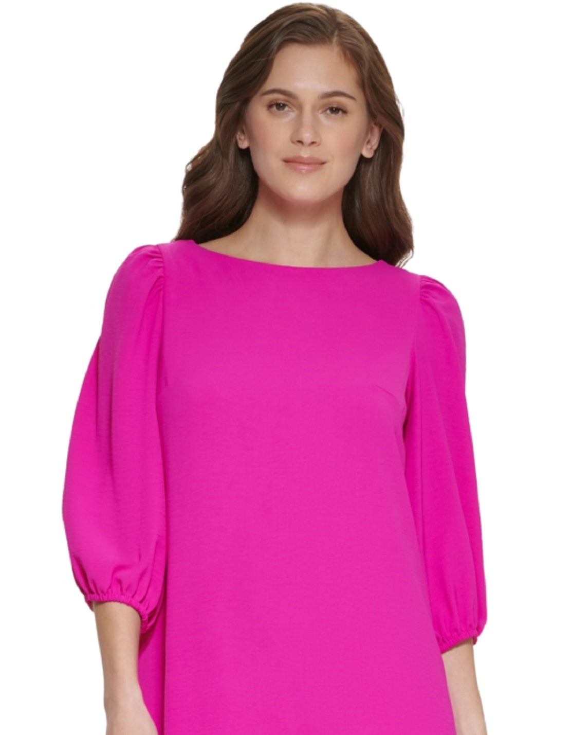 Effortlessly chic| DKNY's minimalist trapeze dress with a balloon sleeve and hem design boasts a relaxed yet figure-flattering silhouette that offers endless styling options for a versatile addition to your wardrobe.| Approx. 34-1/4 long from center back neck to hem. Length is based on size 4 and varies 1/4 between sizes | Crewneck| Back keyhole with button closure| Elbow-length blouson sleeves