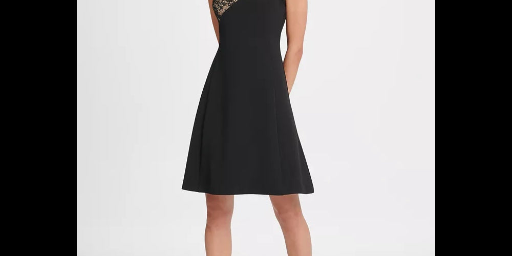 DKNY Women's Sequin And Crepe Combo Fit & Flare Dress Black Size 4