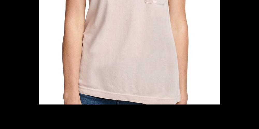 DKNY Women's Sequined Short Sleeve Crew Neck T-Shirt Top Pink Size Large