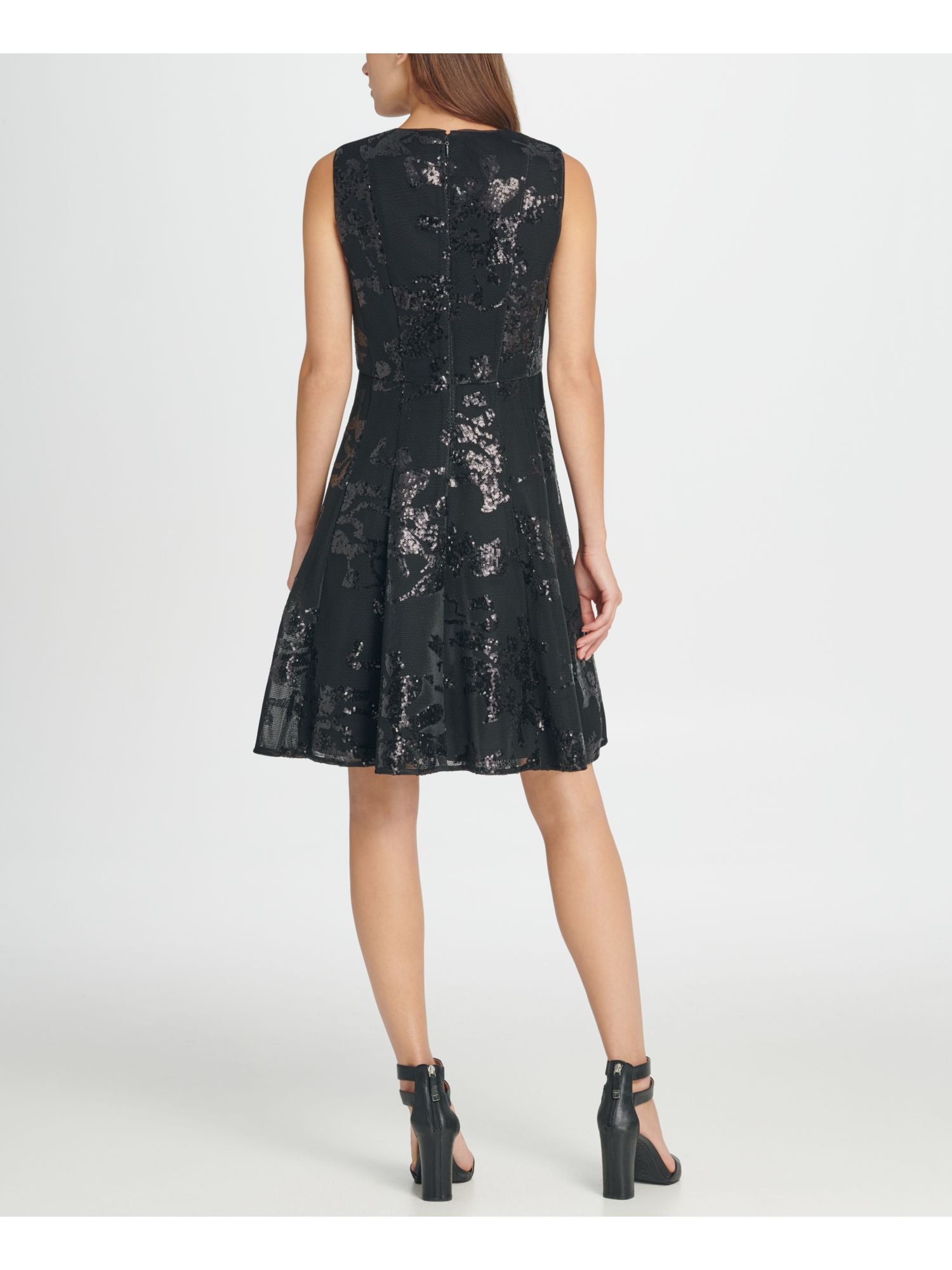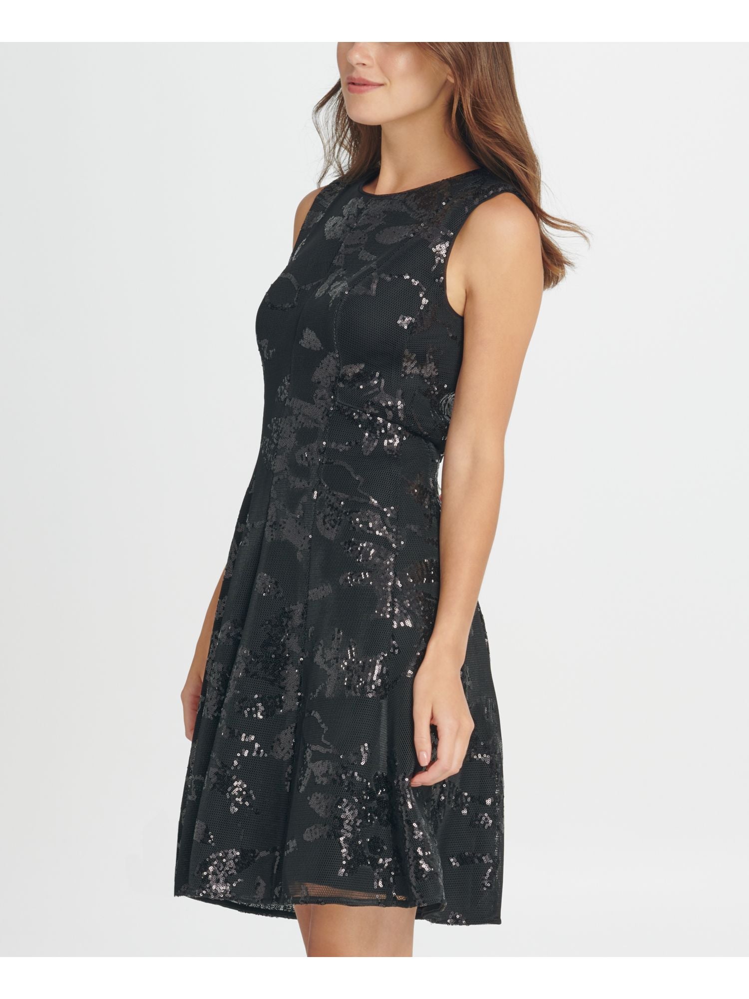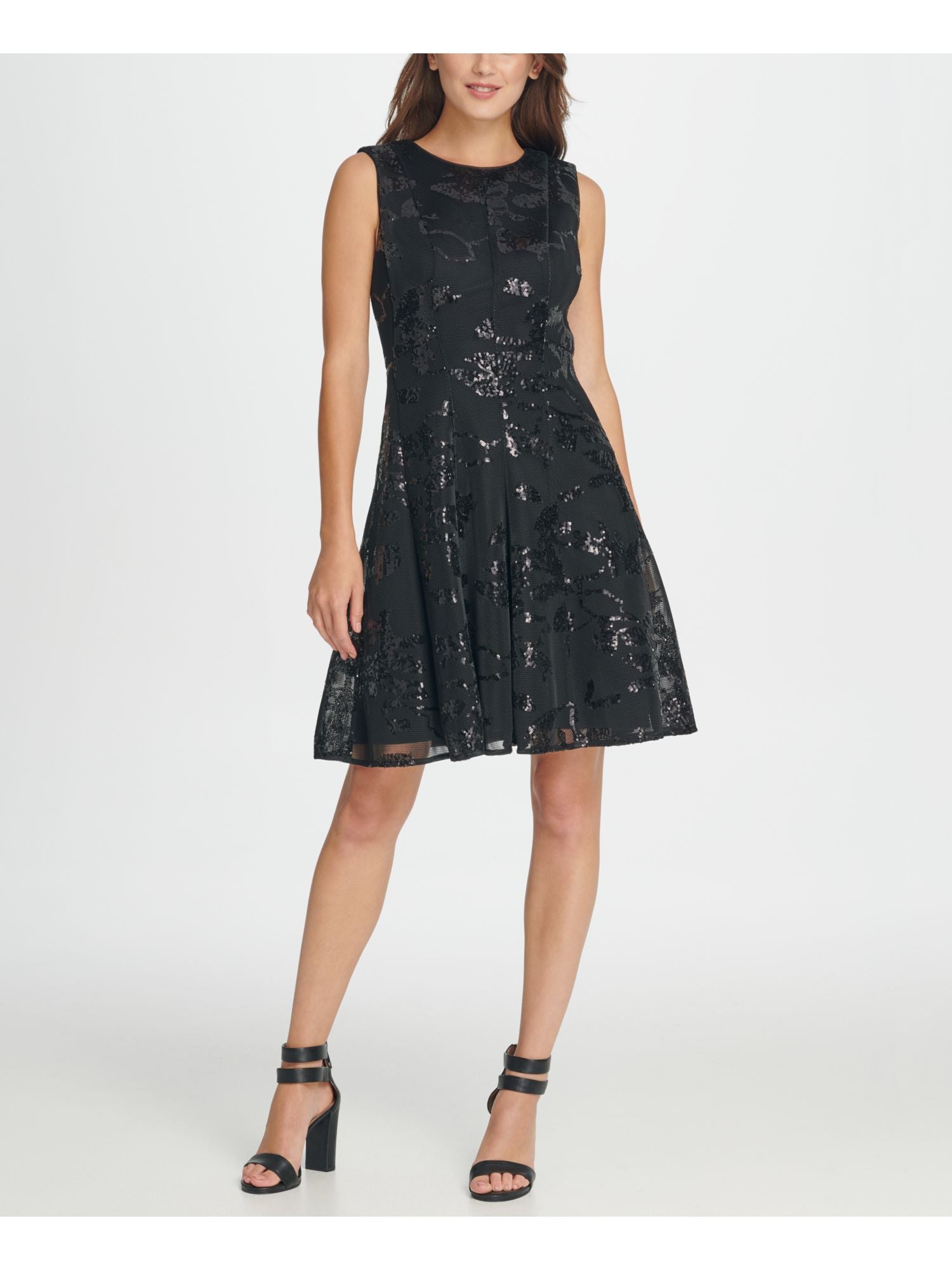 DKNY Women's Sleeveless Jewel Neck Short Fit Flare Party Dress Black Size 2
