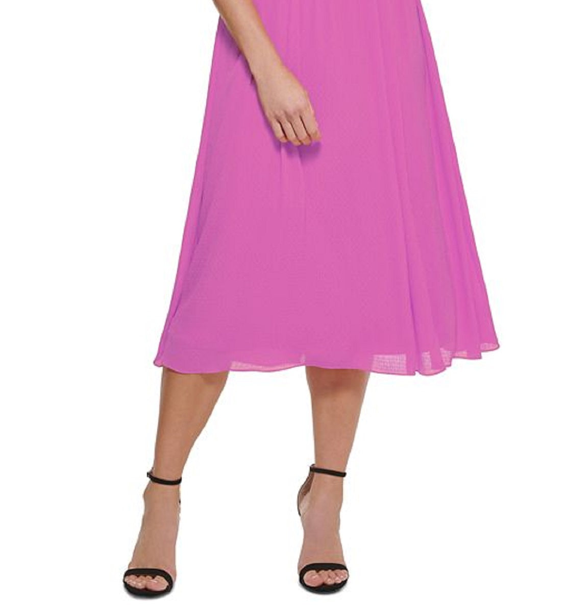 Smocked short sleeves lend a modern touch to this classic midi-length dress from DKNY.| Approx. 46-1/2 long from center back neck to hem. Length is based on size 6 and varies 1/4 between sizes| Falls below the knee to lower calf| V-neck; Midi silhouette| Back zipper closure| Smocked sleeves| Lined