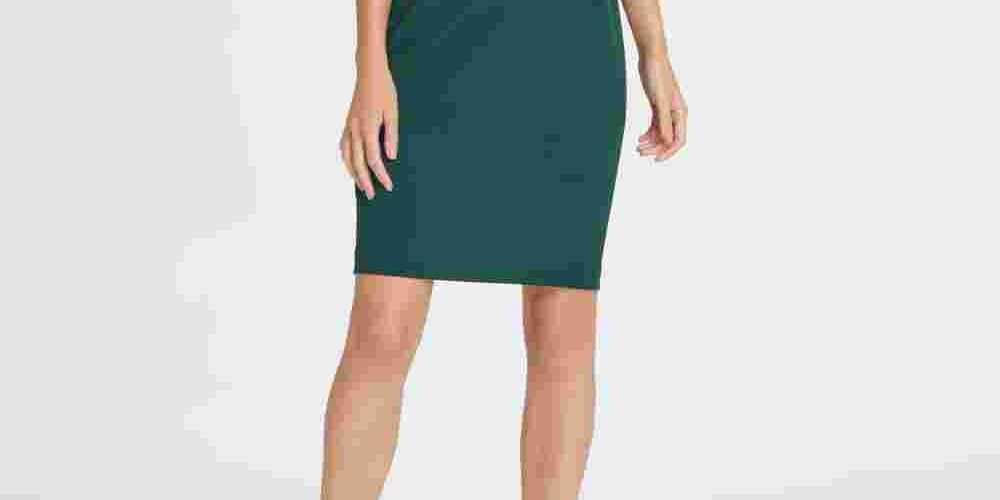 DKNY Women's V-Neck Ruffle Cap Sleeve Sheath Dress Green Size 16